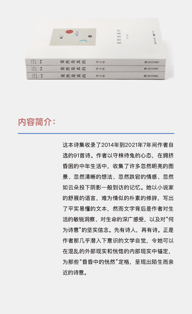 单读新书 009《竟然是真的》,收录了写于 7 年间作者自选的 91 首诗。这是继《出神》《毫无必要的热情》《无中生有》之后,刘天昭的第一本诗集,也是单读出版的第一本诗集。