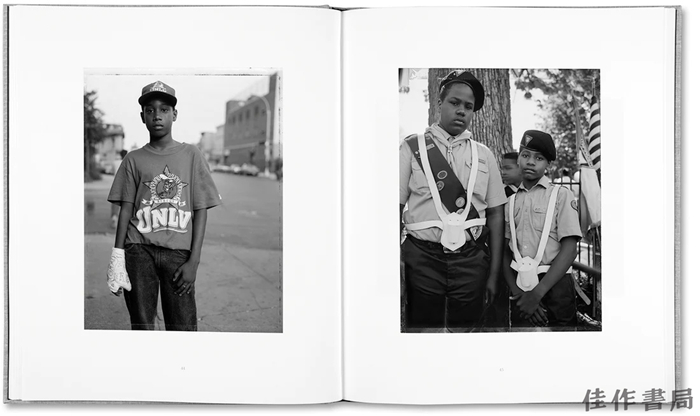 1988年至1991年间,达乌德·贝(Dawoud Bey)在美国多个城市的街头为非裔美国人拍摄了一系列肖像照。他使用一台装在三脚架上的大幅面相机,以及一种独特的正负宝丽来胶片,这种胶片既能即时冲印出照片,又能得到可重复使用的底片。他邀请这些社区不同阶层的人给他当模特,在城市街头营造出一个自我展示与表现的空间。每次拍摄时,贝都会送给每个人一张黑白宝丽来小照片,作为对允许他为自己拍照的人的一种回报。这些肖像照打破了种族刻板印象,展现出黑人主体丰富复杂的心理状态,他们坦然且亲切地向镜头、观众乃至全世界展示自己。