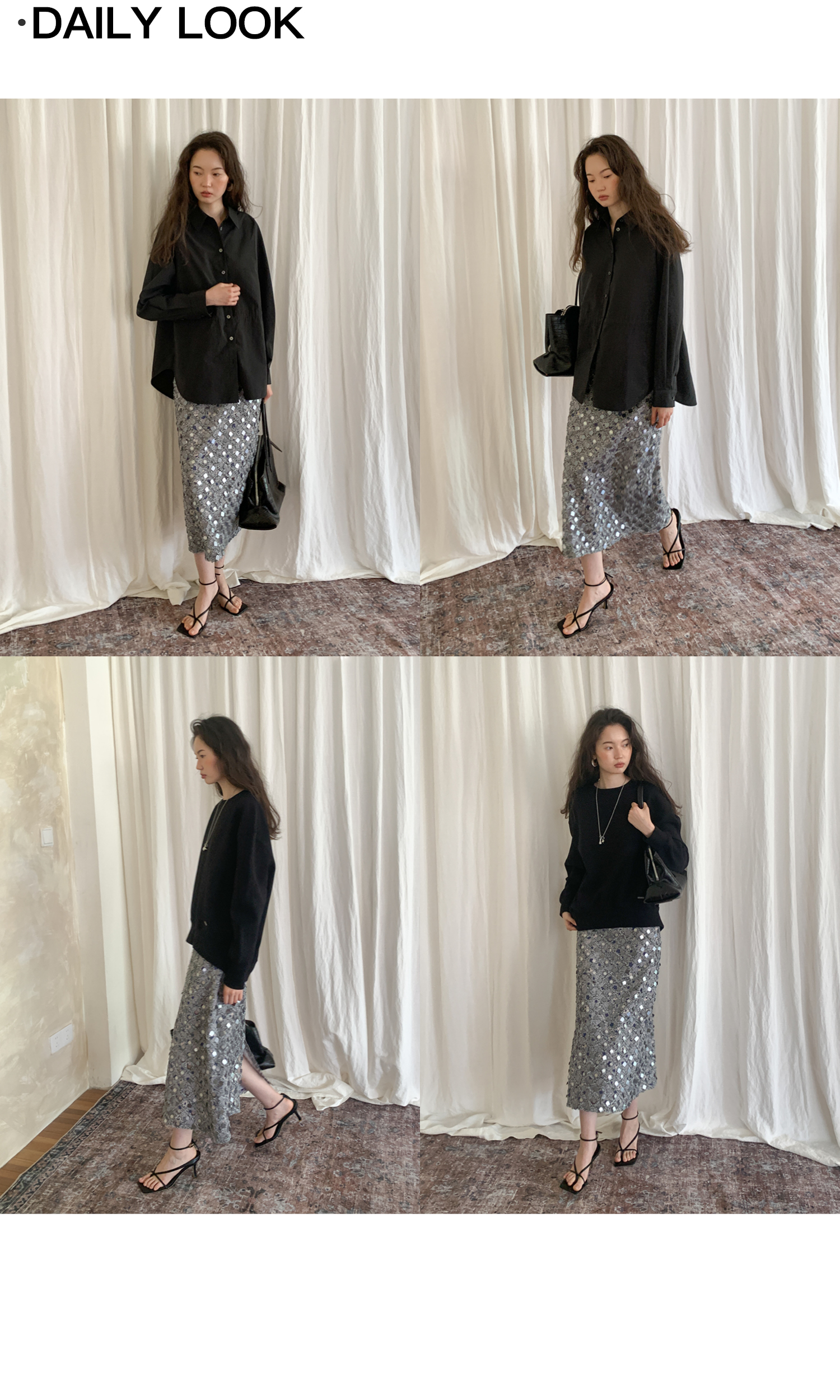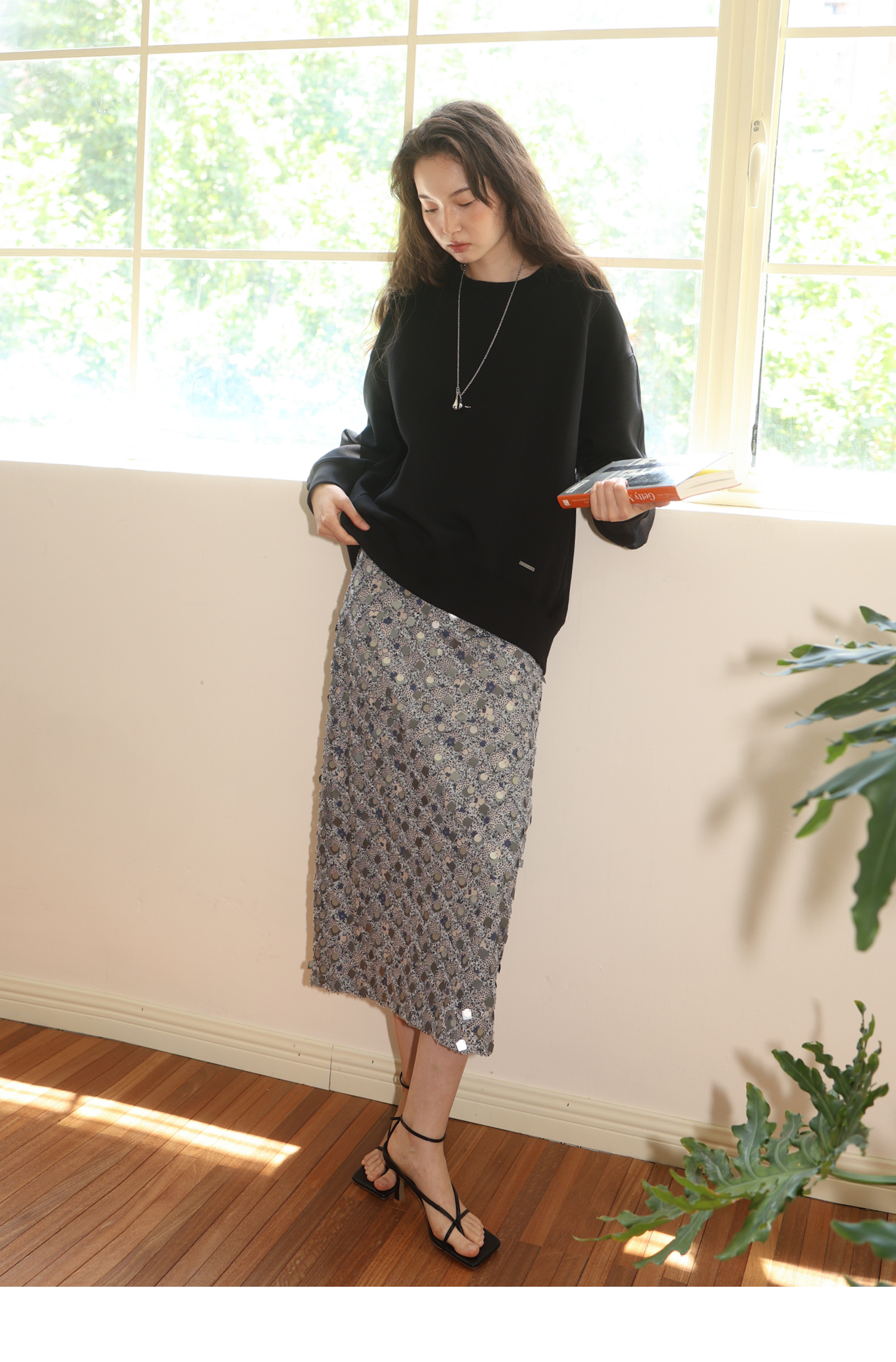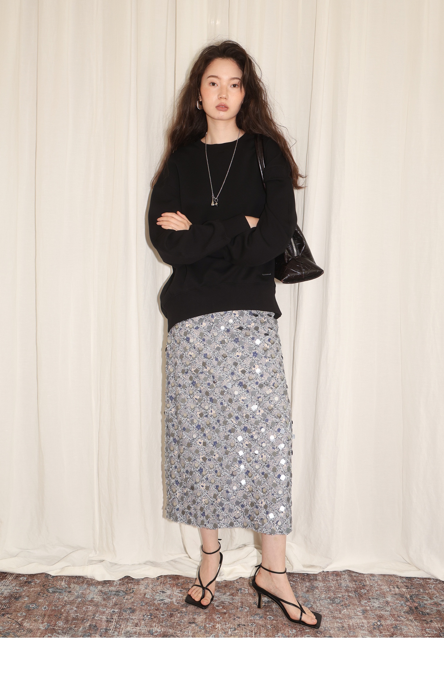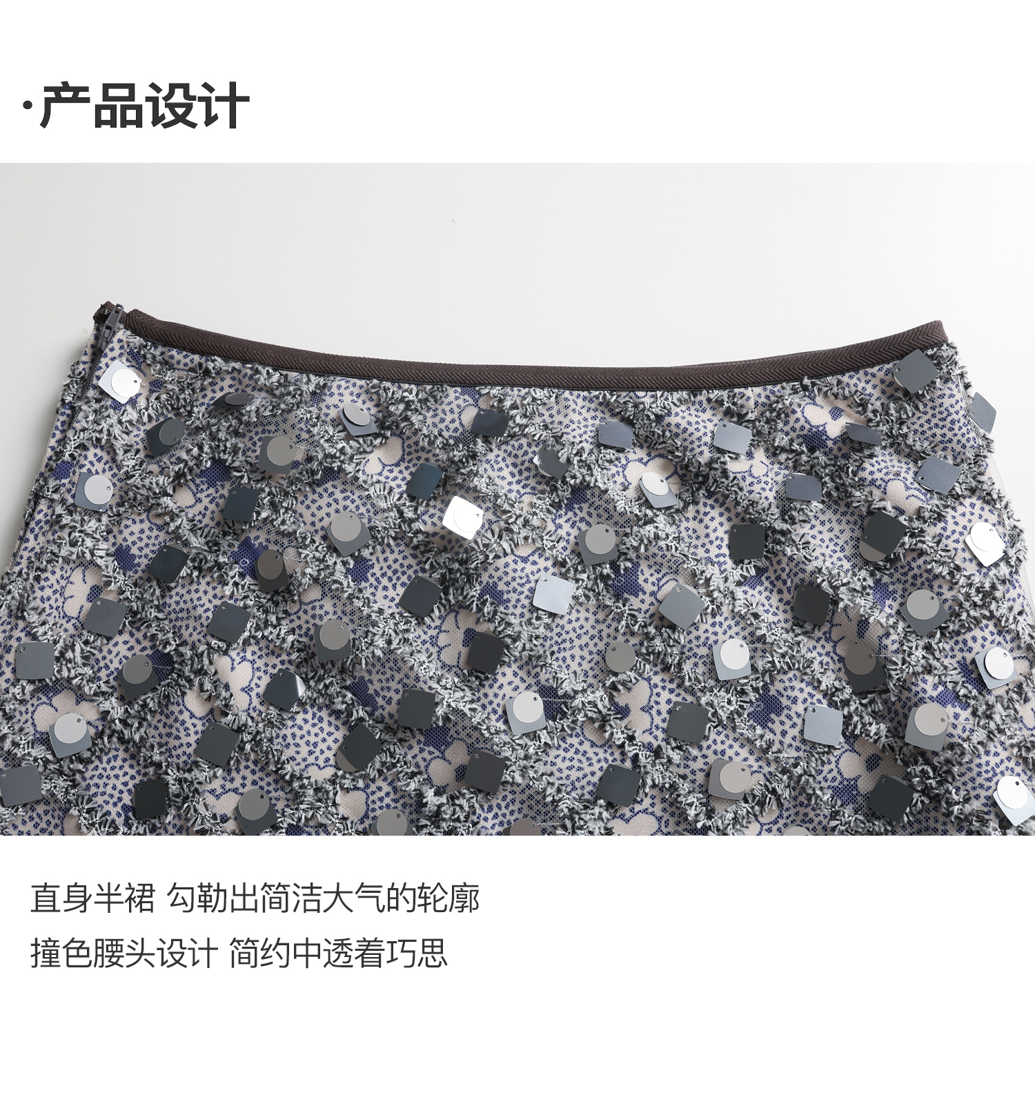 【8/25新品】素舶 重工通透立体珠片碎花双层直身中长半裙