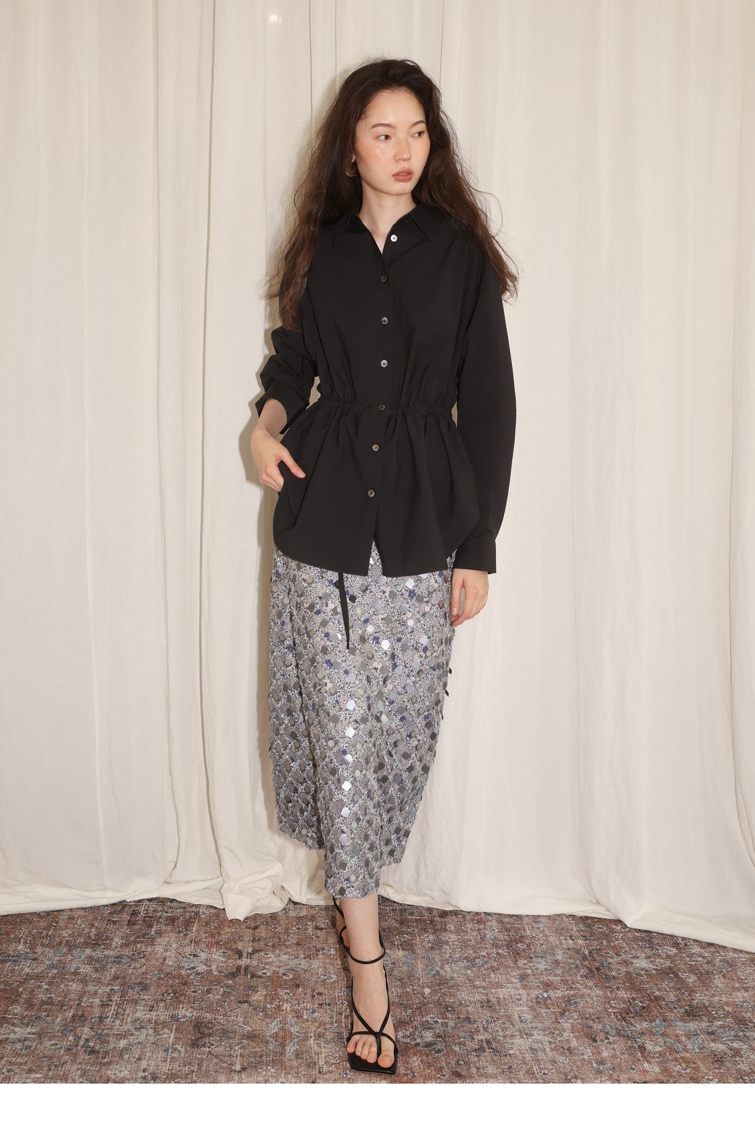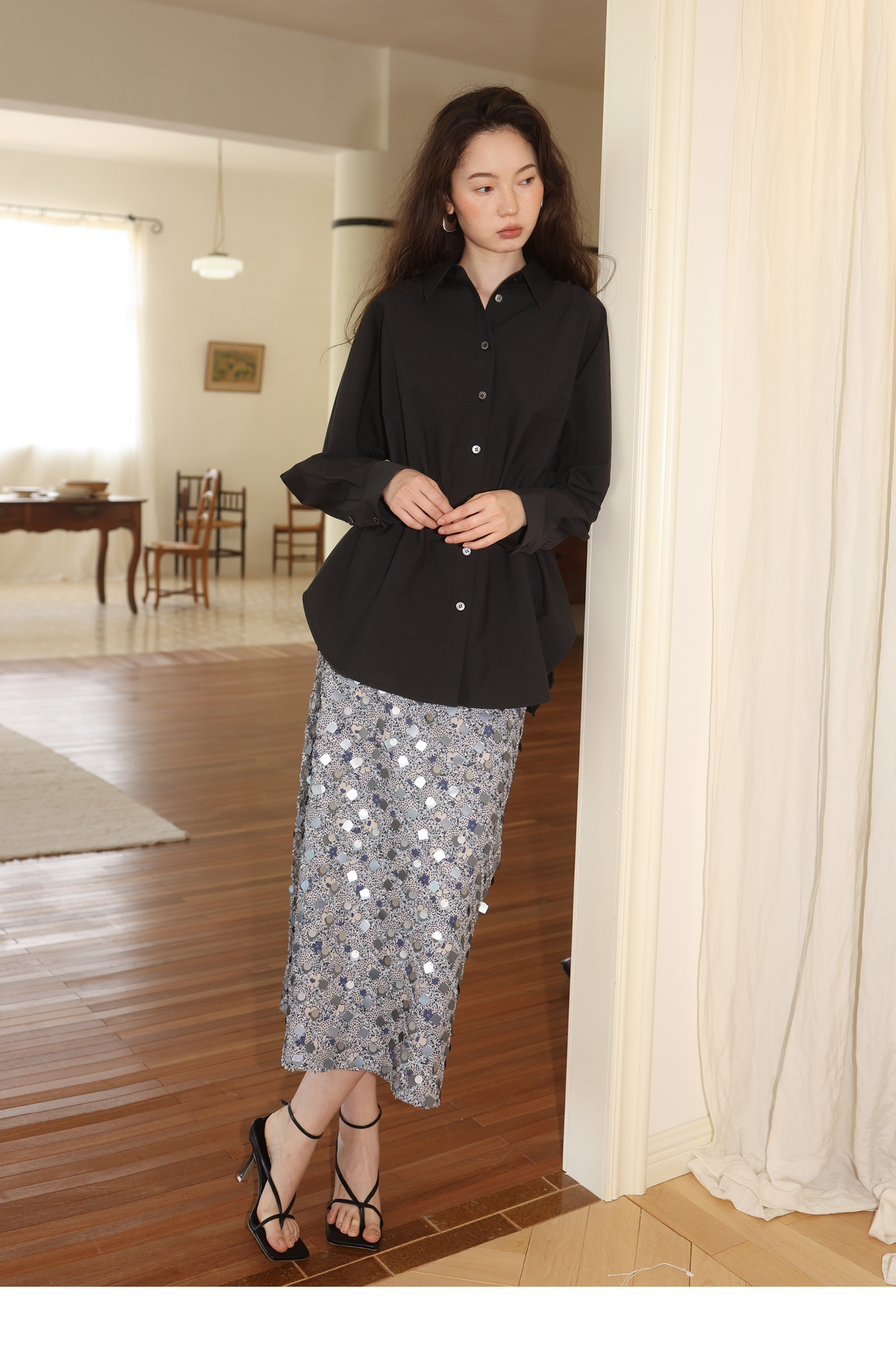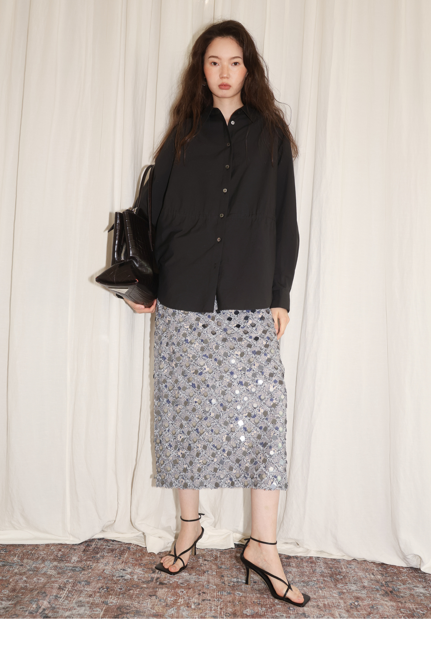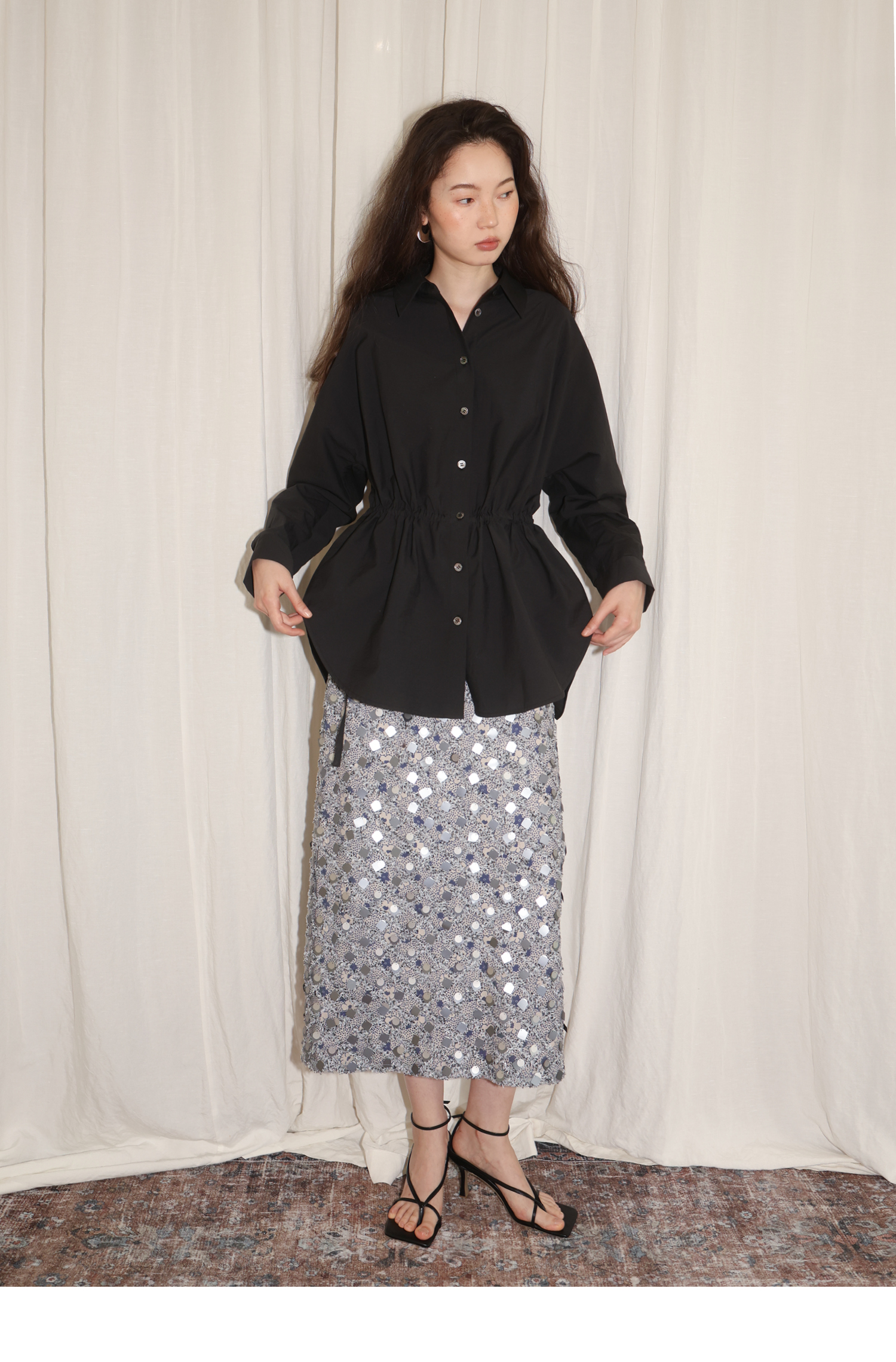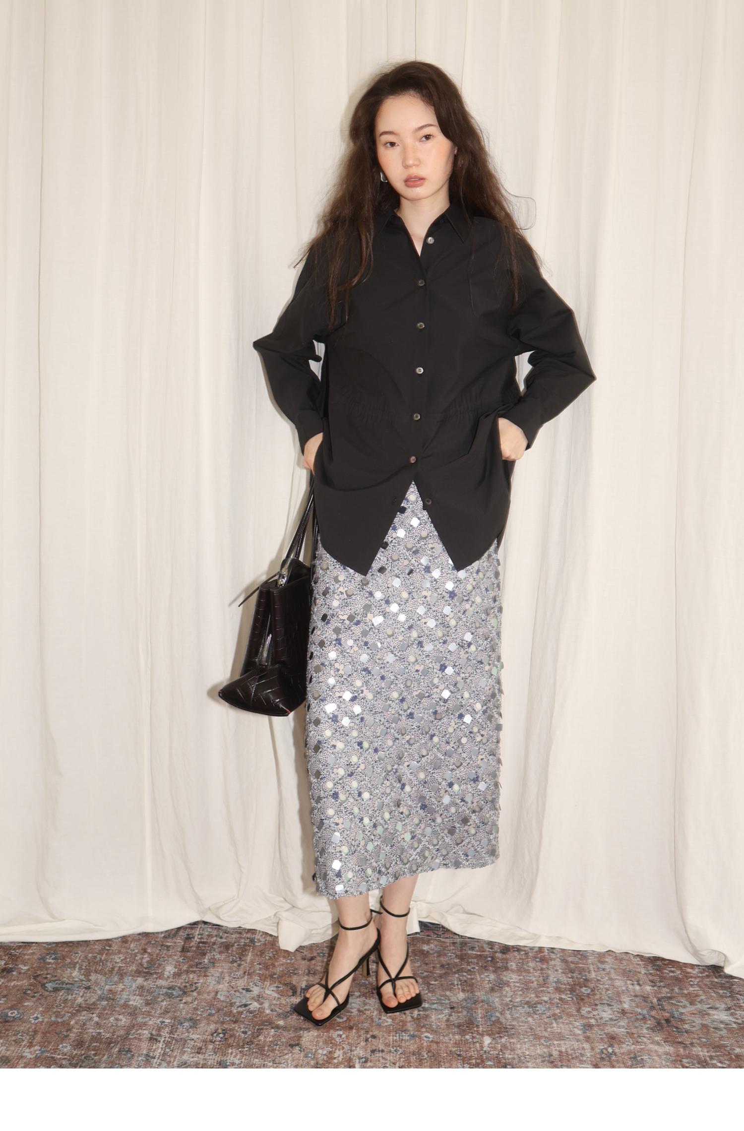 【8/25新品】素舶 重工通透立体珠片碎花双层直身中长半裙