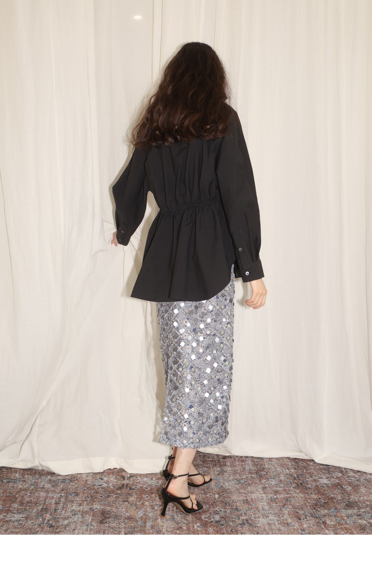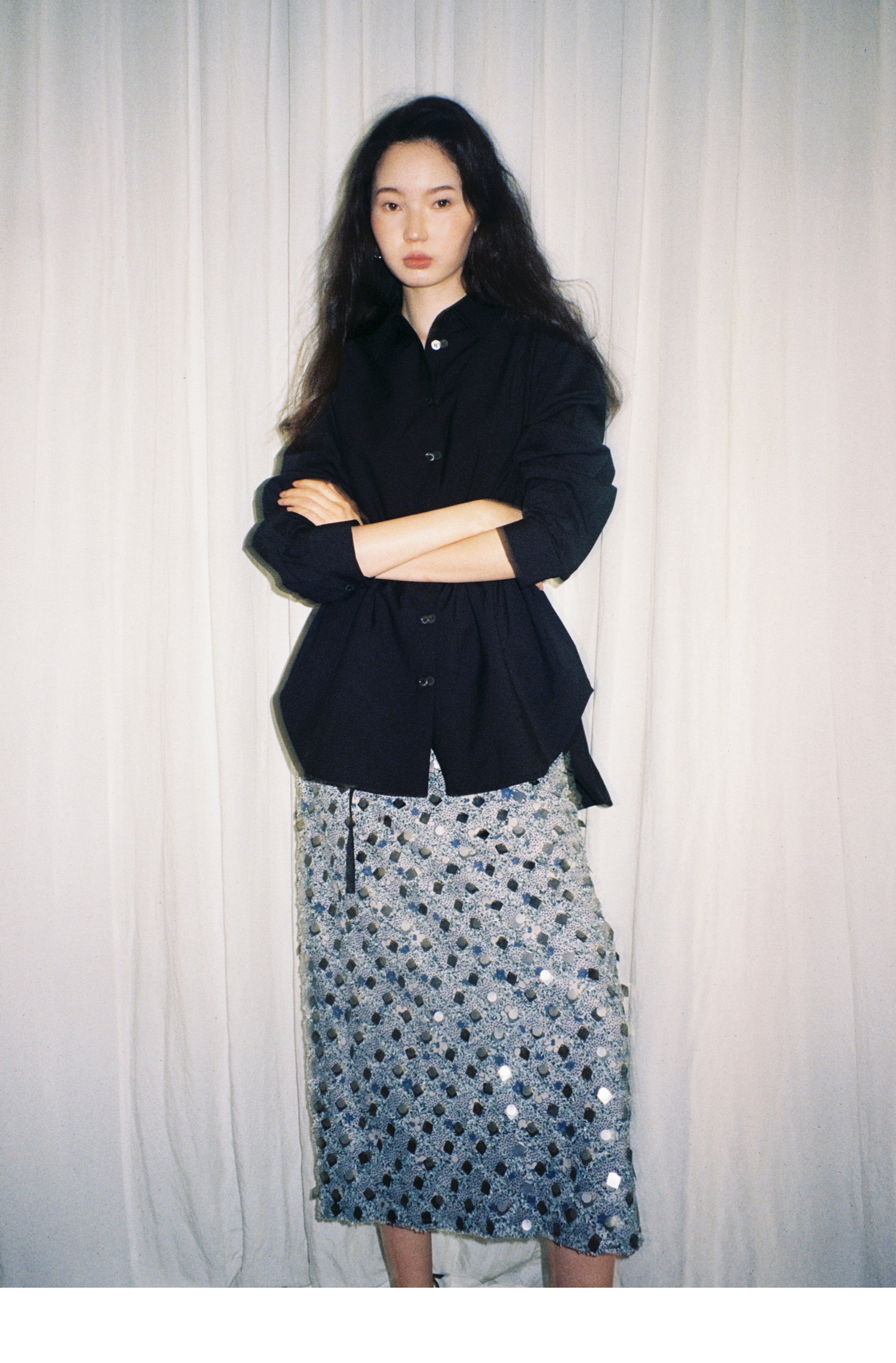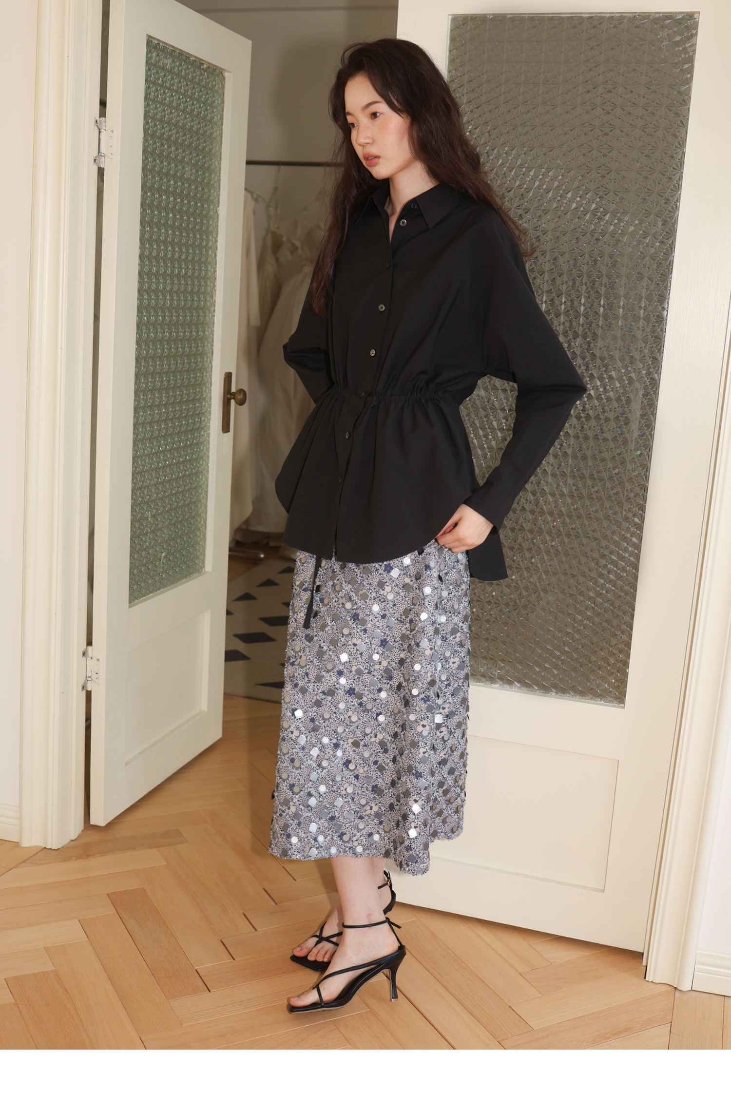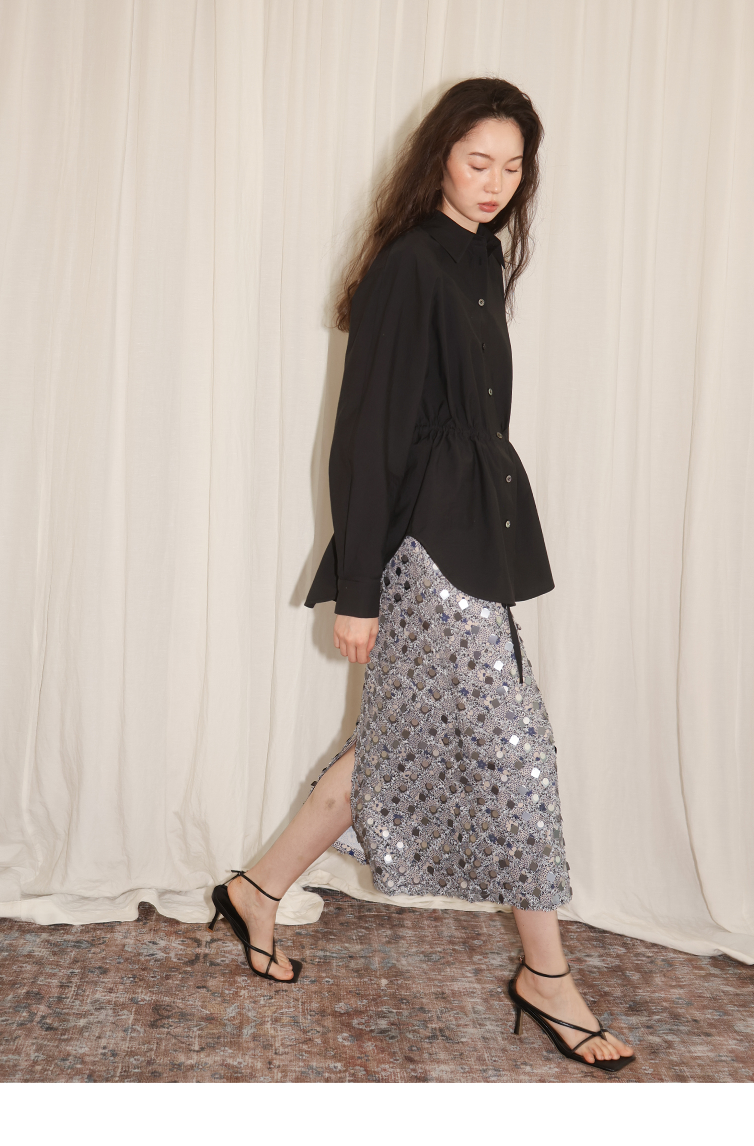 【8/25新品】素舶 重工通透立体珠片碎花双层直身中长半裙