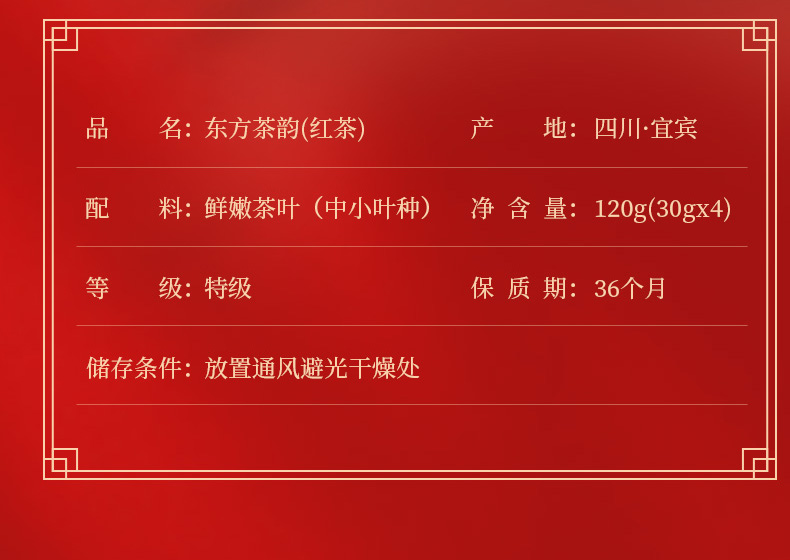 川红 东方茶韵-红 四川非遗特级工夫红茶礼盒装120g【送礼袋】