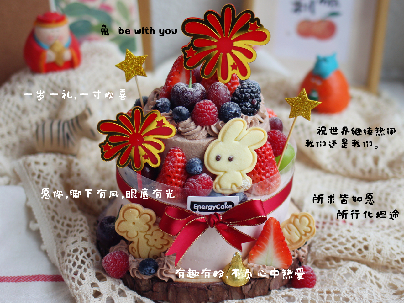 装饰:新鲜水果,可爱的小兔子手作装饰