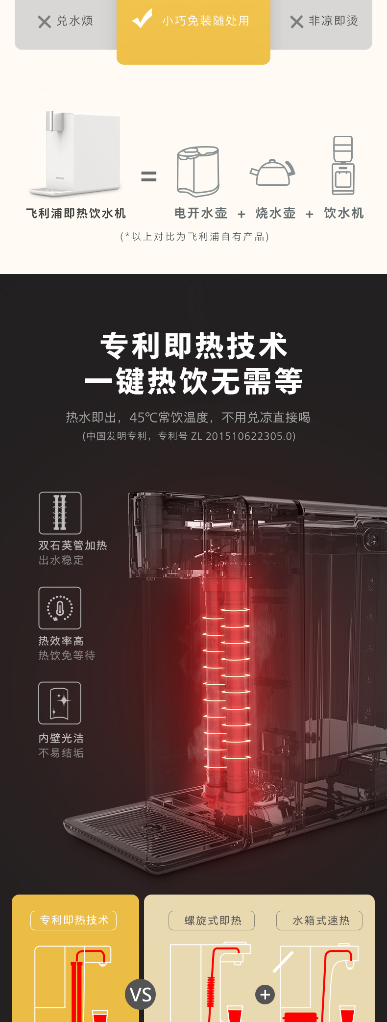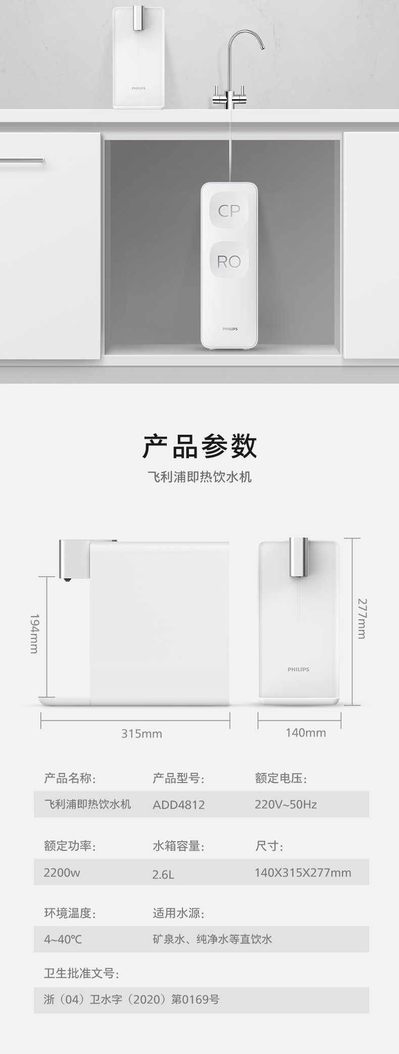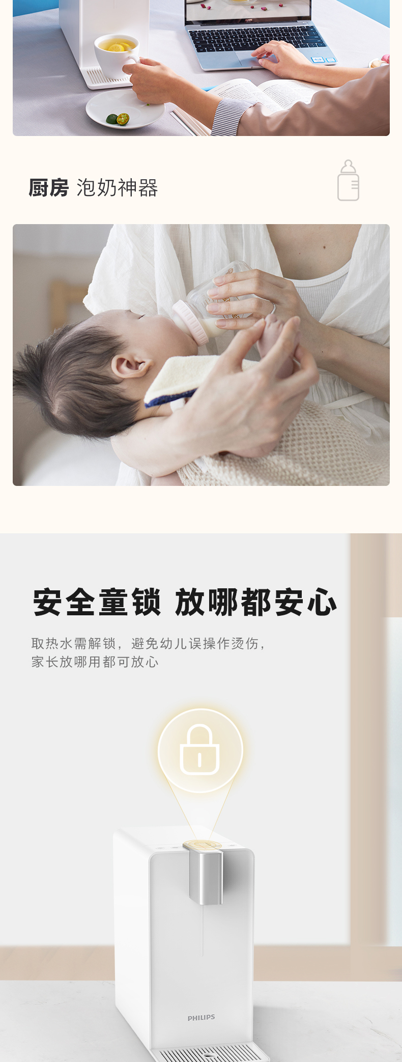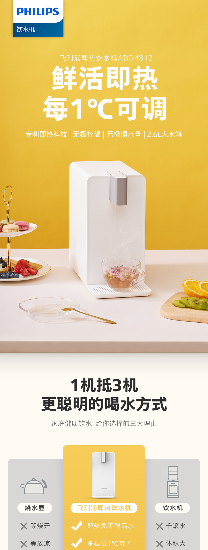 飞利浦 ( PHILIPS )即热饮水机家用直饮台式速热一体机免安装小白熊ADD4812