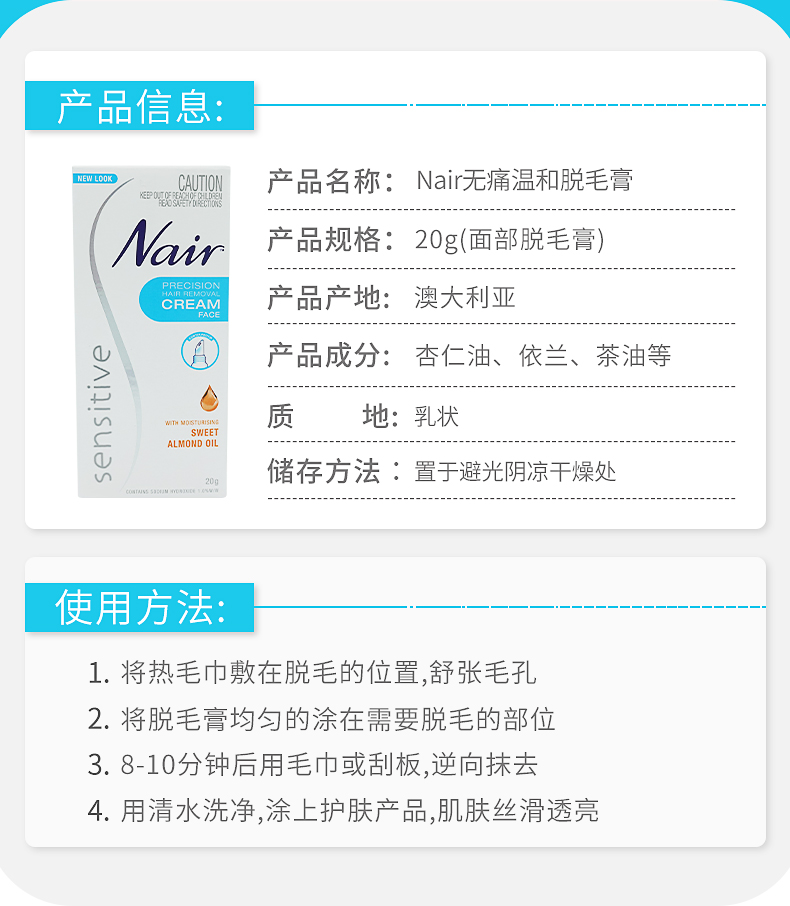 【保税仓】澳洲 Nair 敏感肌肤面部脱毛膏20g