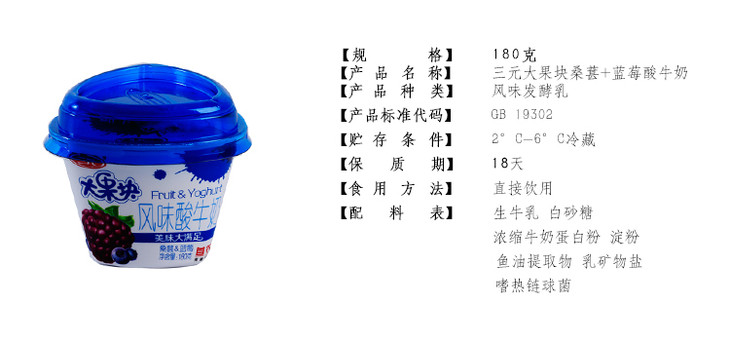 三元大果块酸牛奶(桑葚+蓝莓)260g