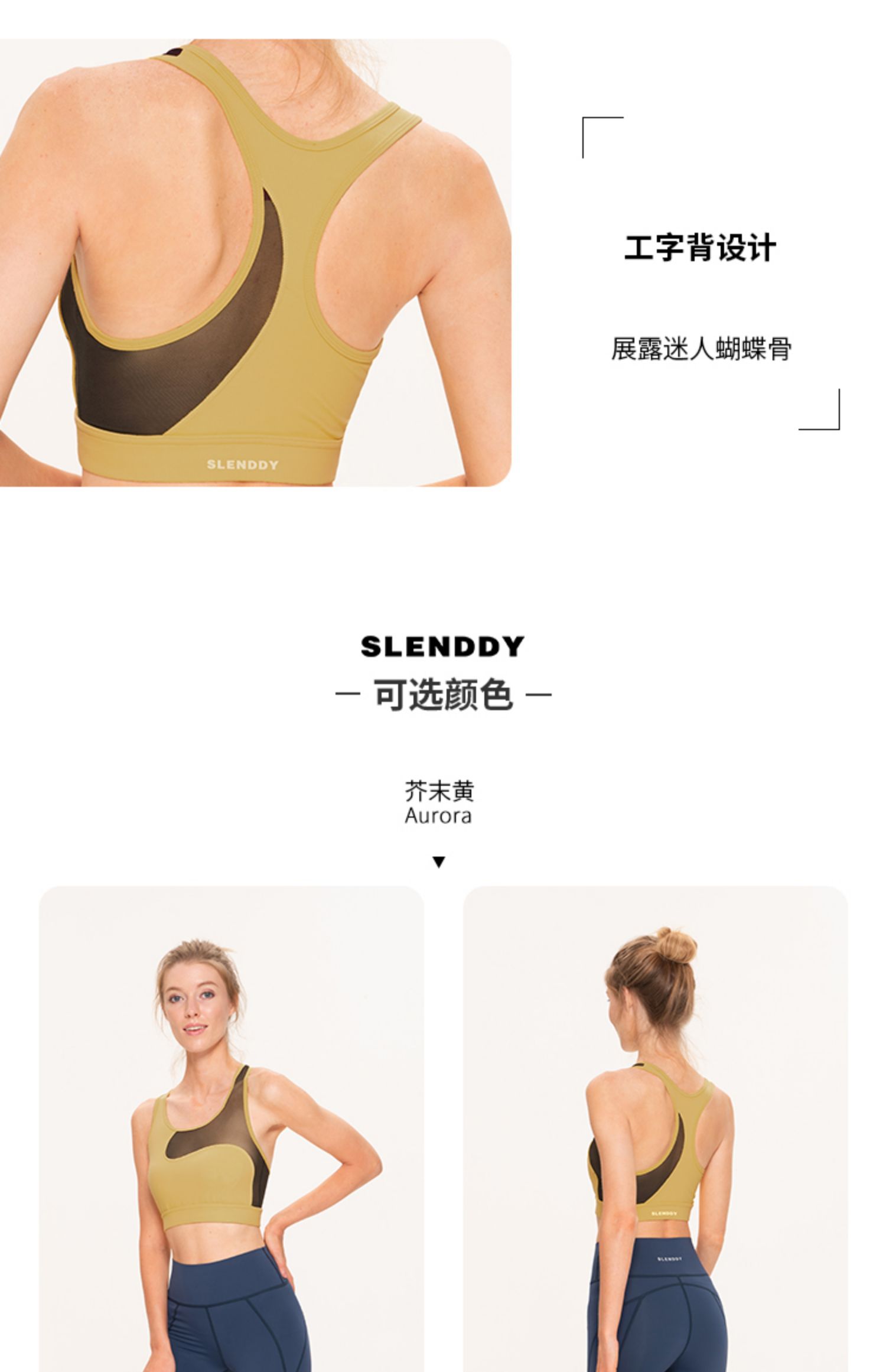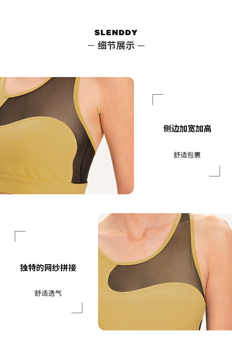 slenddy Aullira网纱拼接防震瑜伽背心运动文胸健身内衣女S8202