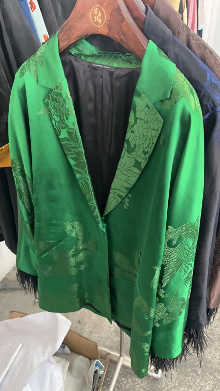 盛唐牡丹| 民国真丝老面料配鸵鸟毛西装外套-翠绿