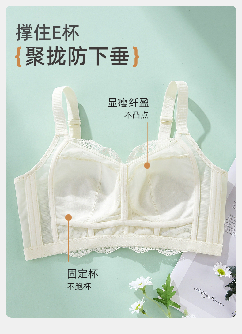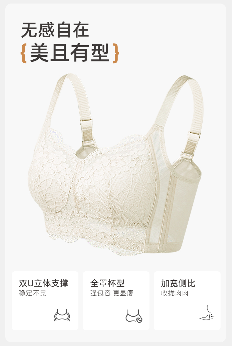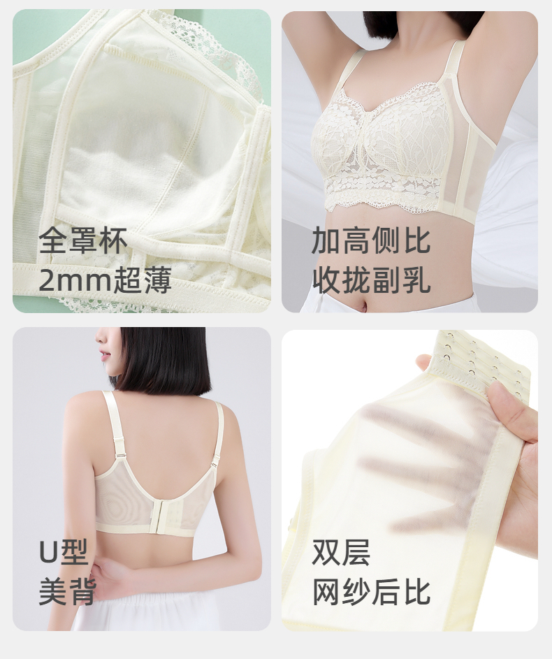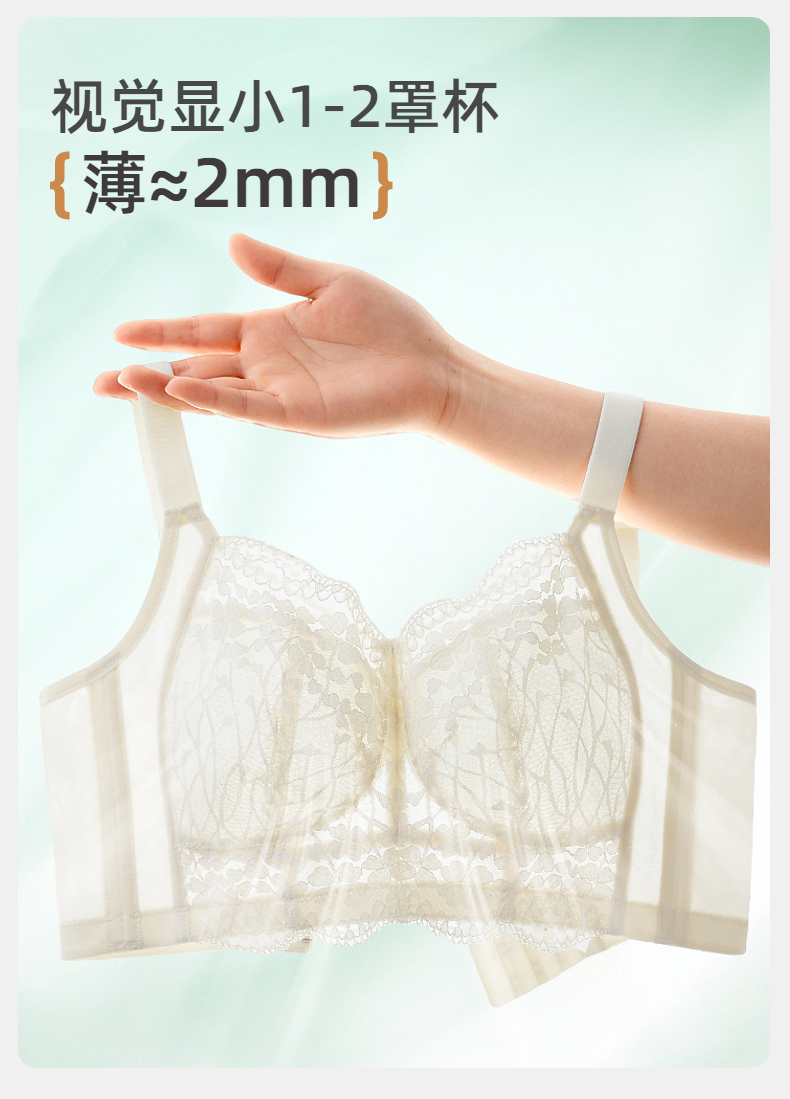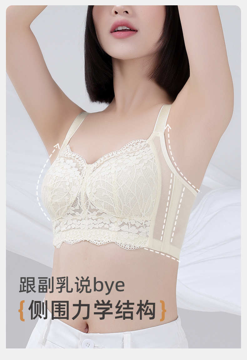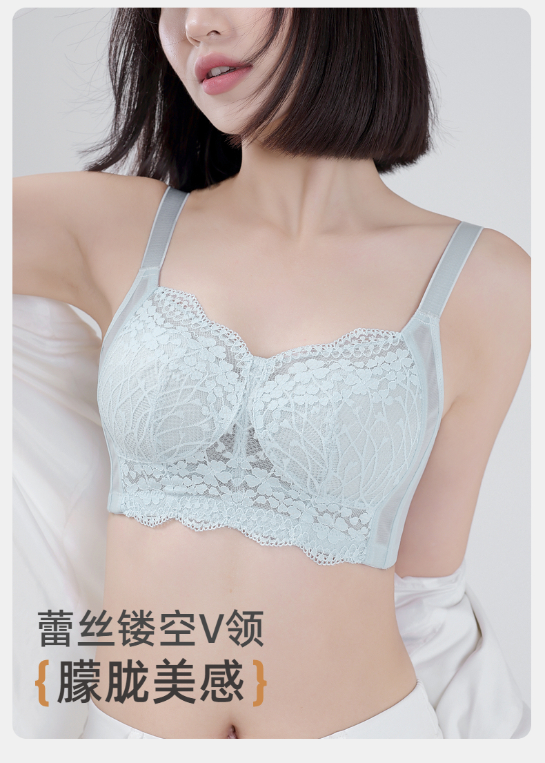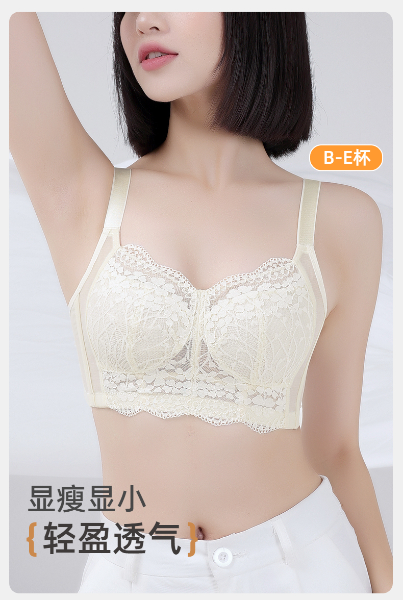 雅黛俪内衣女蕾丝大胸显小显瘦轻薄透气全罩杯收副乳无钢圈文胸