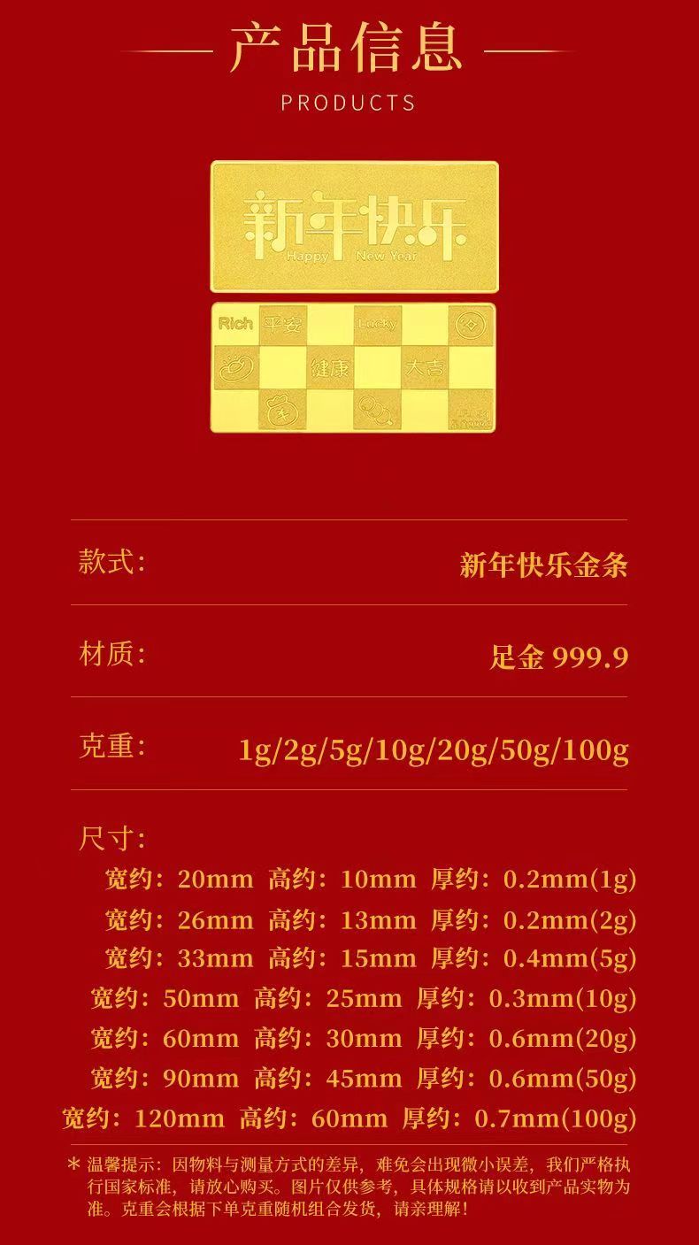 【新年快乐】春节贺岁金条 9999足金(支持鉴定)