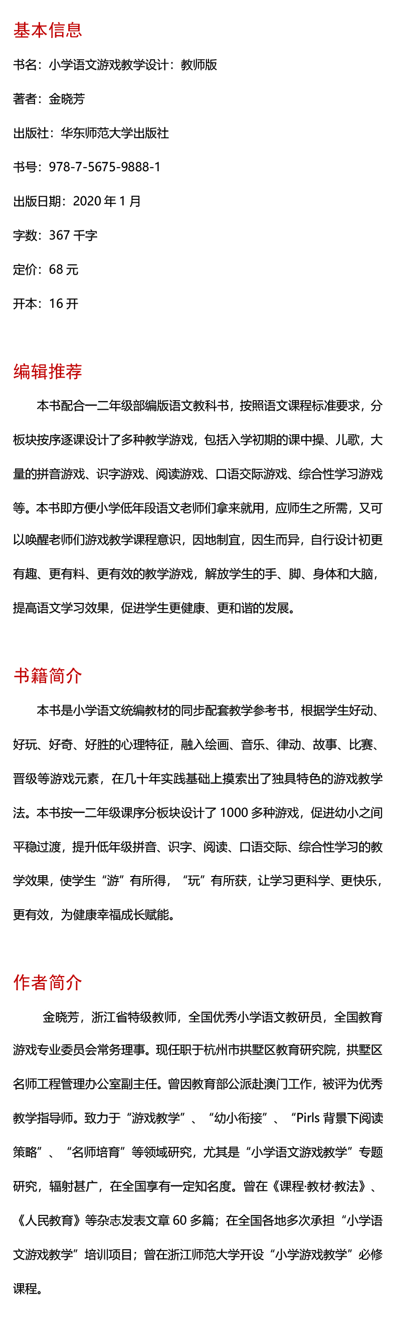 小学语文游戏教学设计 教师版 统编本一二年级 部编版同步配套