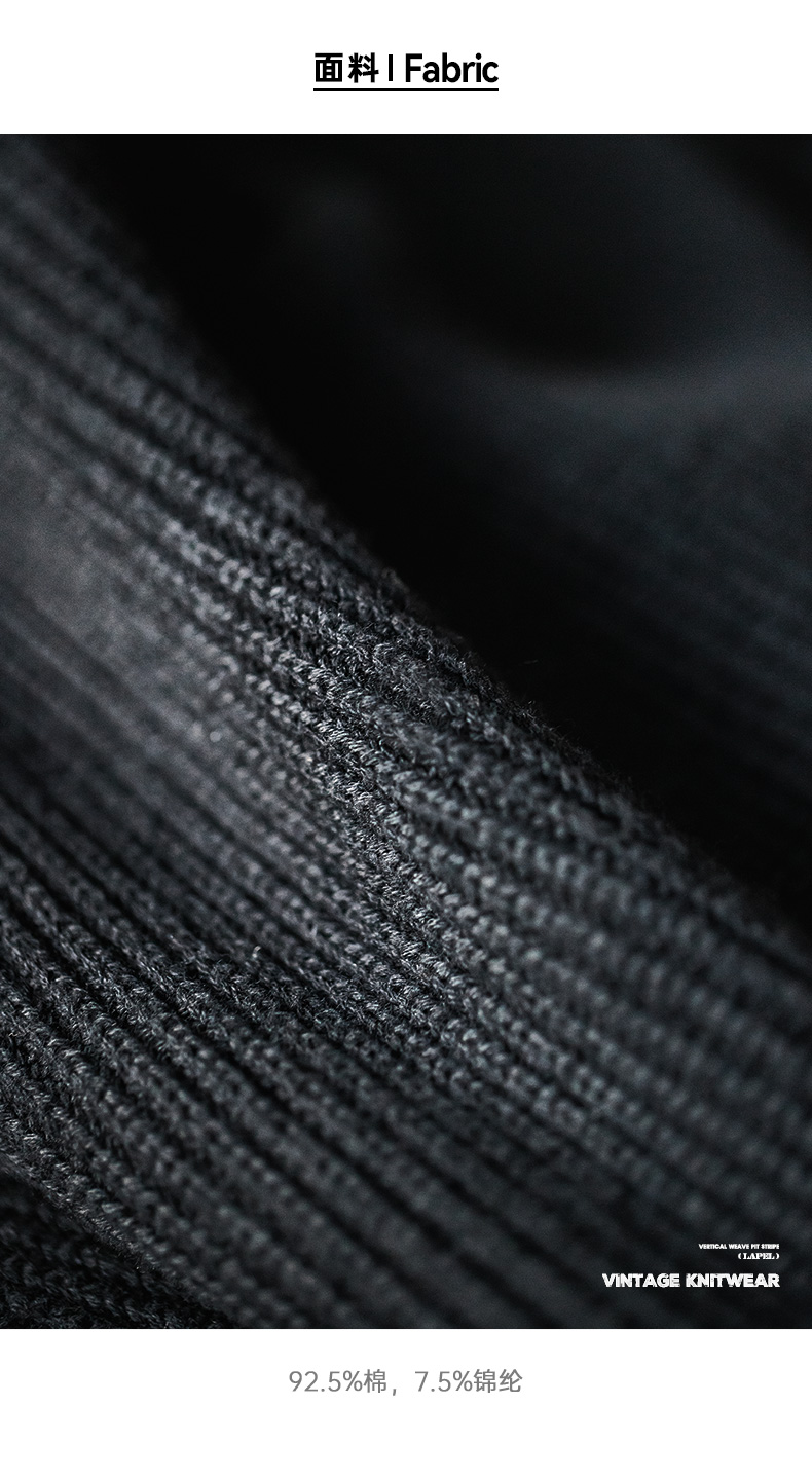 工装优选 美式复古翻领polo衫宽松慵懒套头坑条针织衫毛衣男秋冬