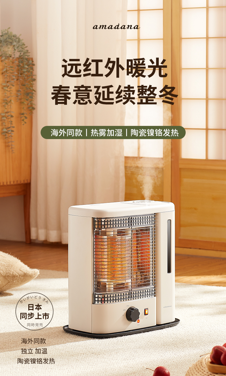 [屁侠推荐]amadana远红外热加湿电暖器-HFU02 热雾加湿 补水温润过冬 陶瓷镍铬发热稳定 室外亦可用 远红外光波 暗柔光不伤眼 两档功率 节能省电 倾倒断电 机械旋钮