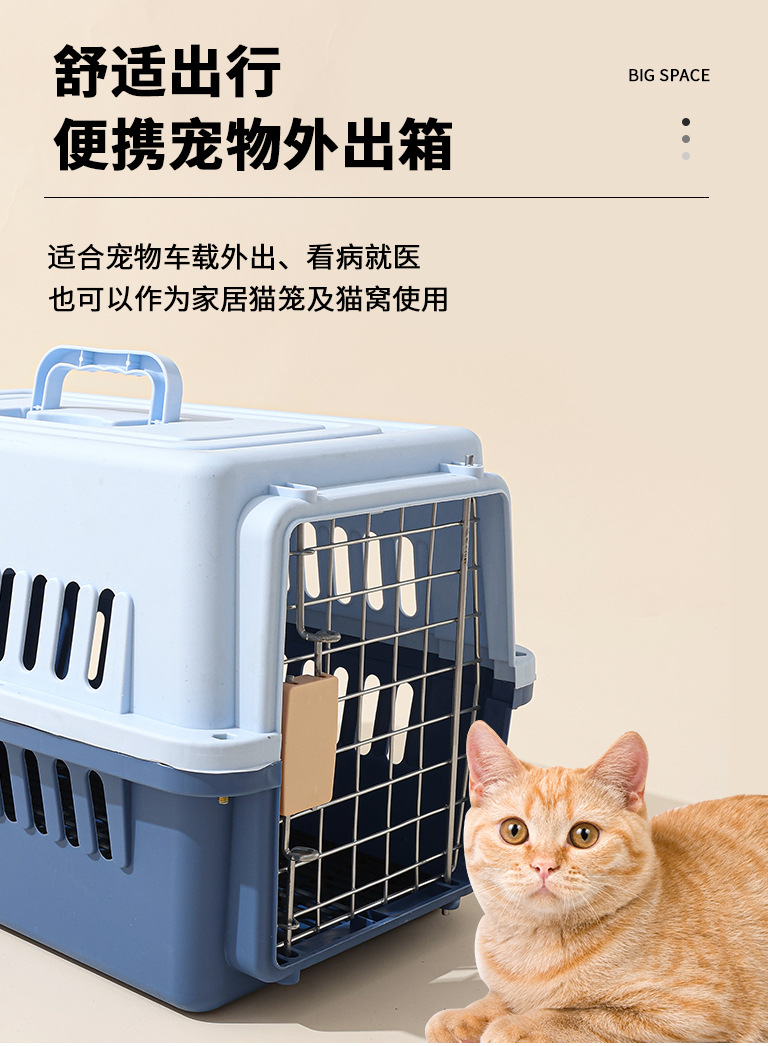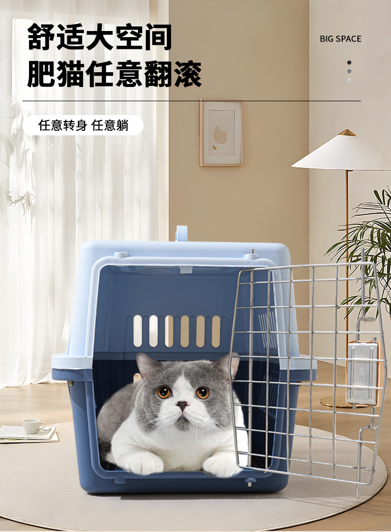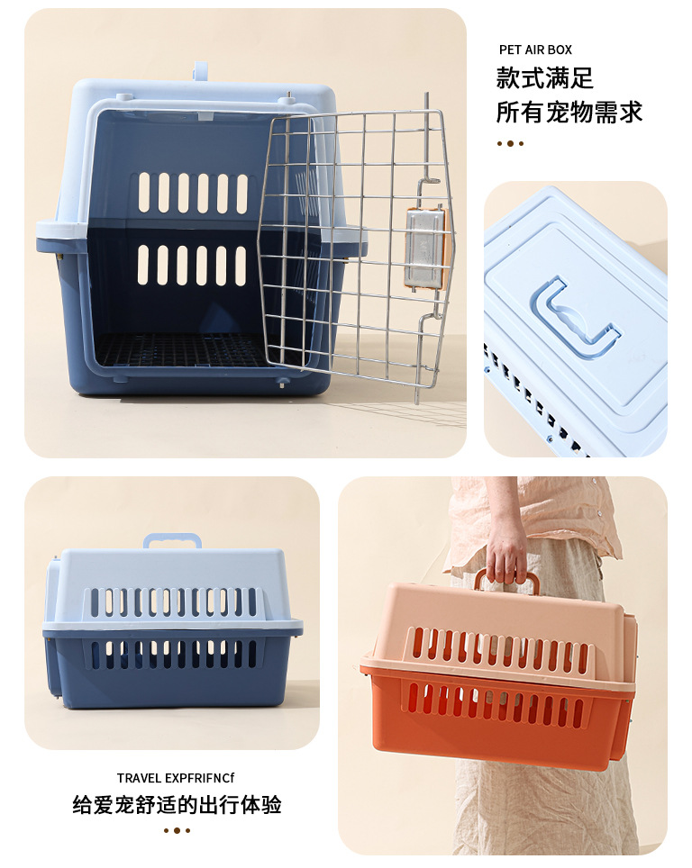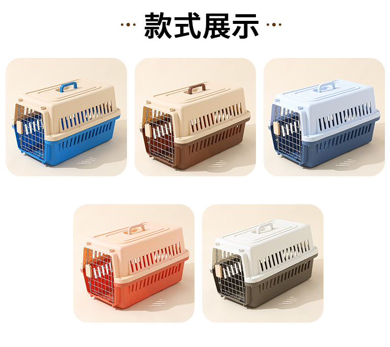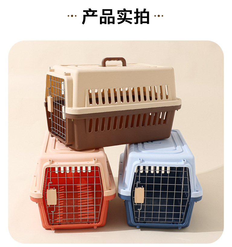 粉色宠物航空箱栅栏式猫包狗笼子外出猫太空舱大小型犬托运空运箱咖啡色配隔尿垫+挂碗+尿片