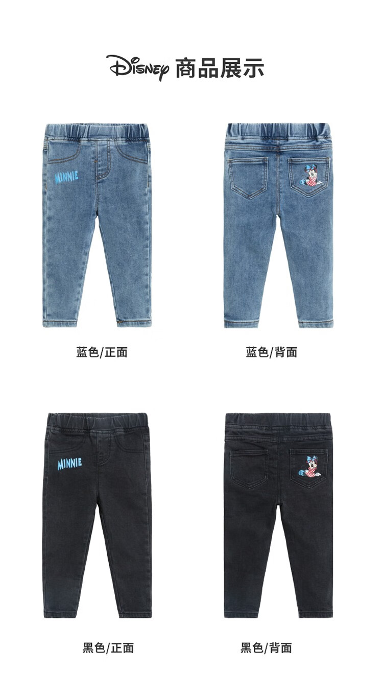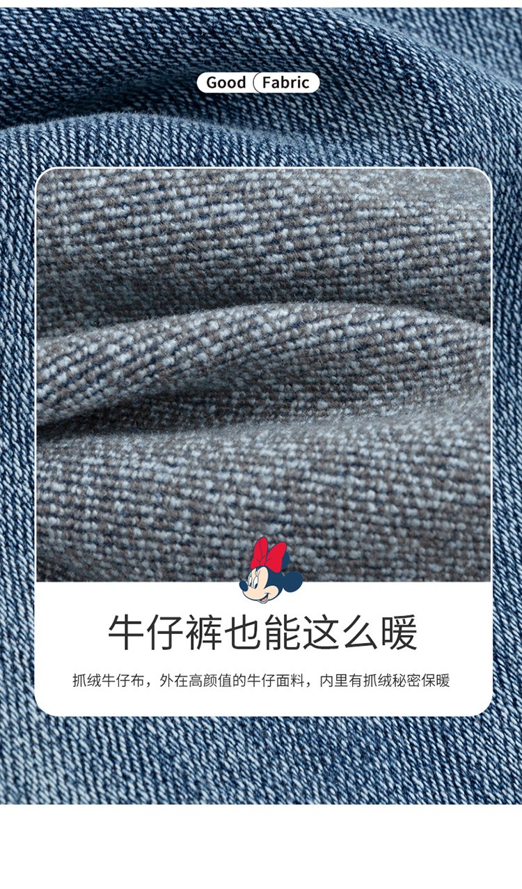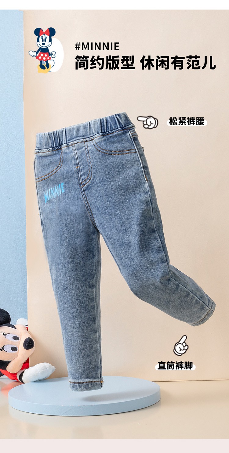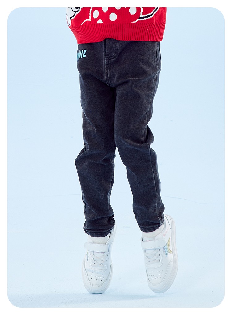 【商场同款】迪士尼童装 儿童春秋抓绒休闲裤女童时尚保暖牛仔裤214DK0181