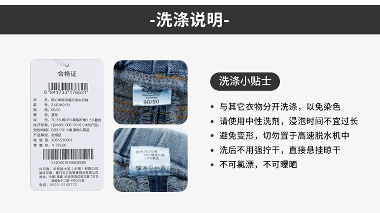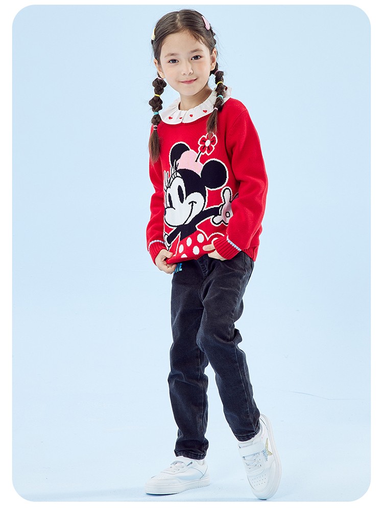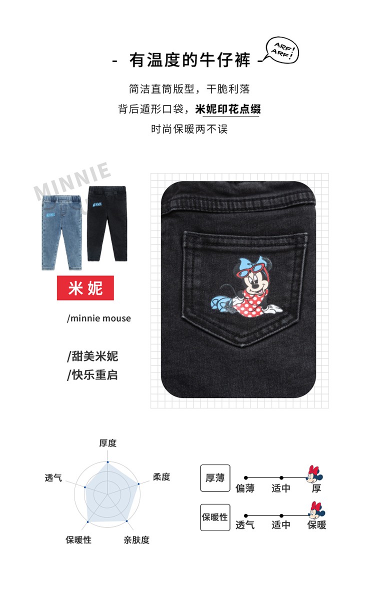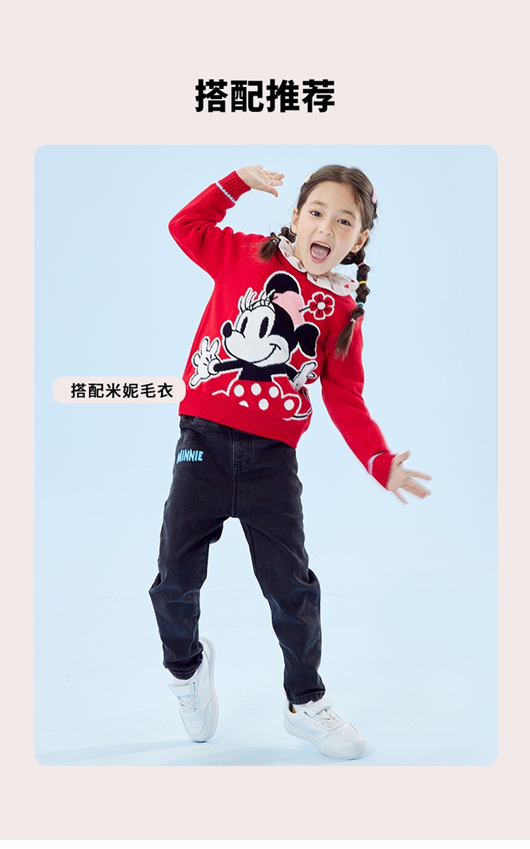 【商场同款】迪士尼童装 儿童春秋抓绒休闲裤女童时尚保暖牛仔裤214DK0181