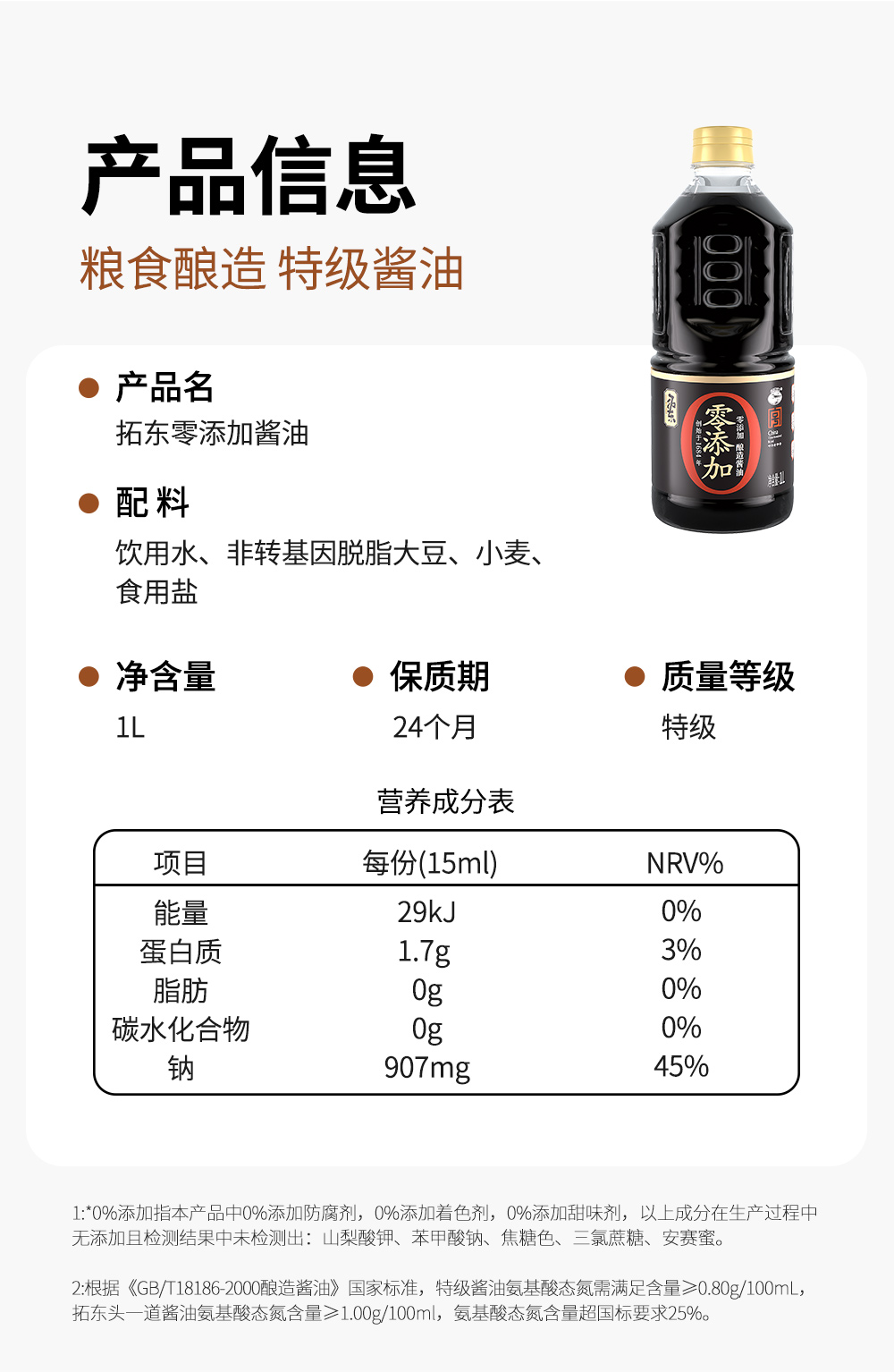 【拓东】零添加酱油香醋组合180天鲜活酿造 特级生抽酱油家用调味汁