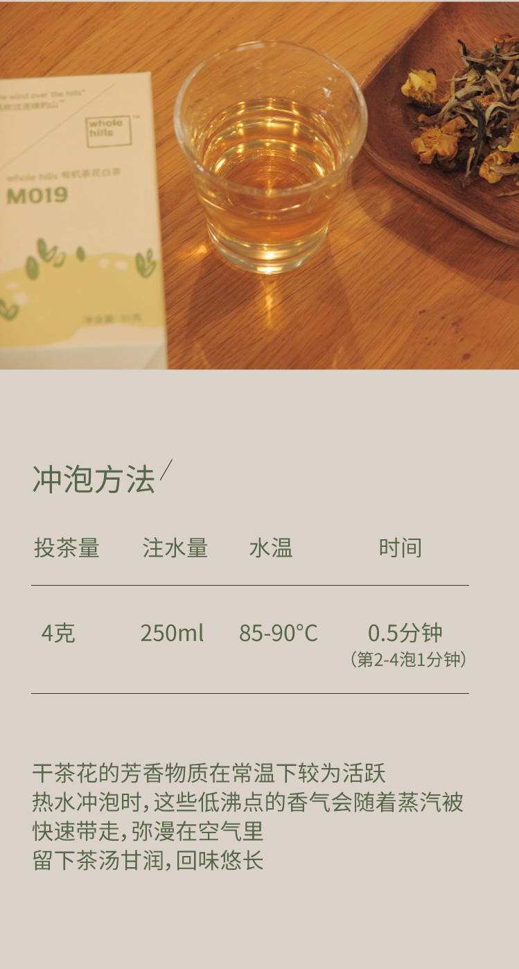 whole hills有机茶花白茶M019(明亮、青果香)