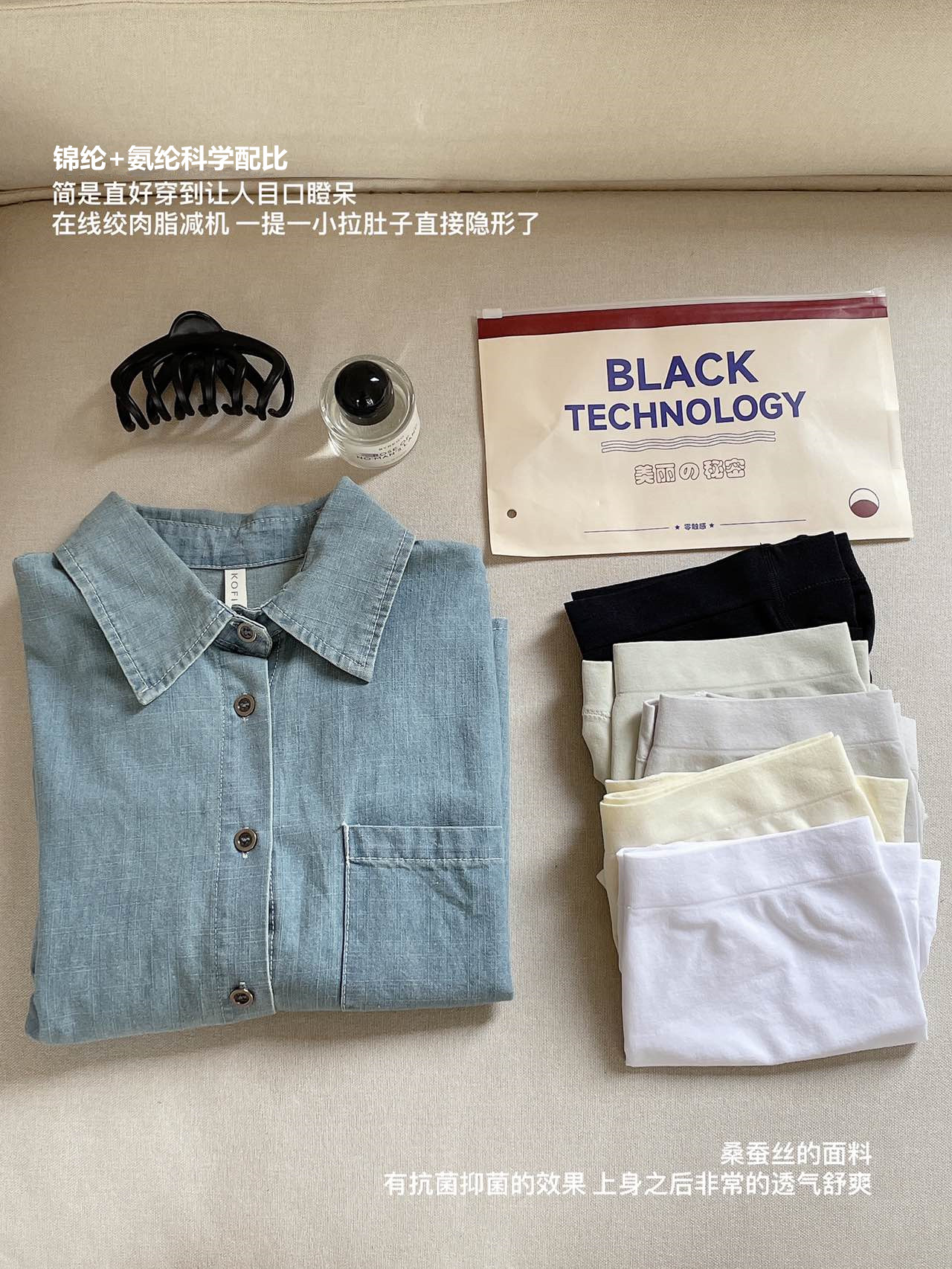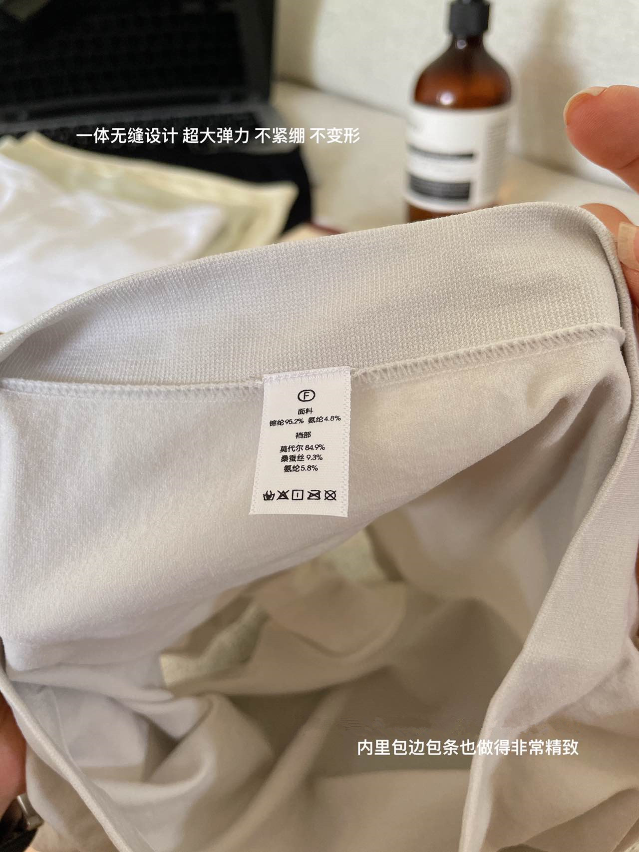裆部:莫代尔84.9%;桑蚕丝9.3%;氨纶5.8%
