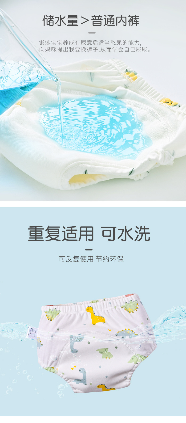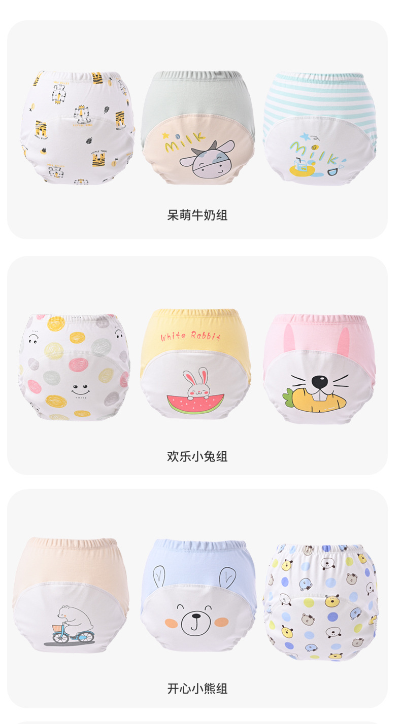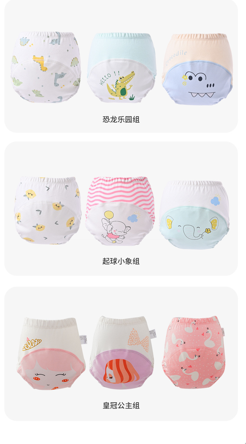 【3条装 轻松戒尿不湿 远离红PP】宝宝训练裤6层纱布幼儿如厕学习裤可洗棉透气隔尿裤练习裤