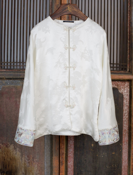 盛唐牡丹| 珍珠白真丝竹子纹偏襟上衣