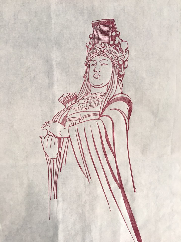 为表达对妈祖神的敬意,古椿阁的刷印师傅裁切好莹润可喜的安徽泾县手工宣纸,以八宝朱砂刷印,可致数百年不变色不褪色,并恭请寺院高僧开光,装裱装框供奉收藏,实属价值高蹈、不可方物的上品。