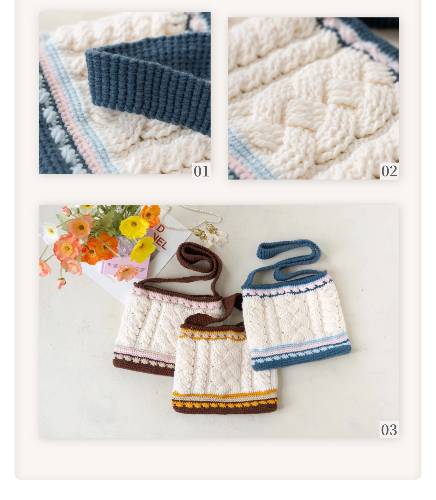 苏苏姐家麻花斜挎包手工diy编织钩针腈纶线毛线团自制包包材料包