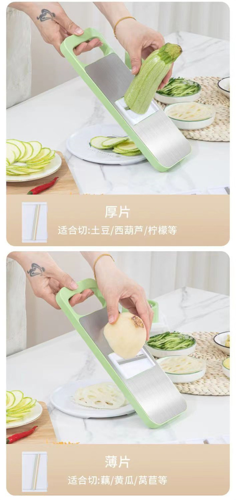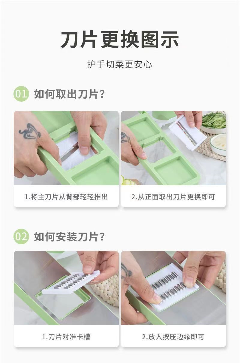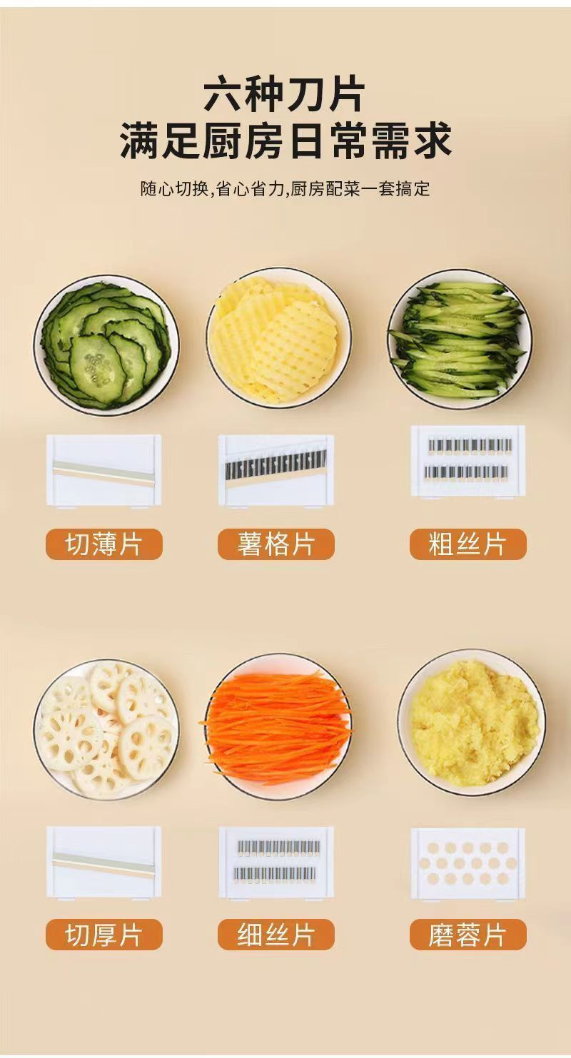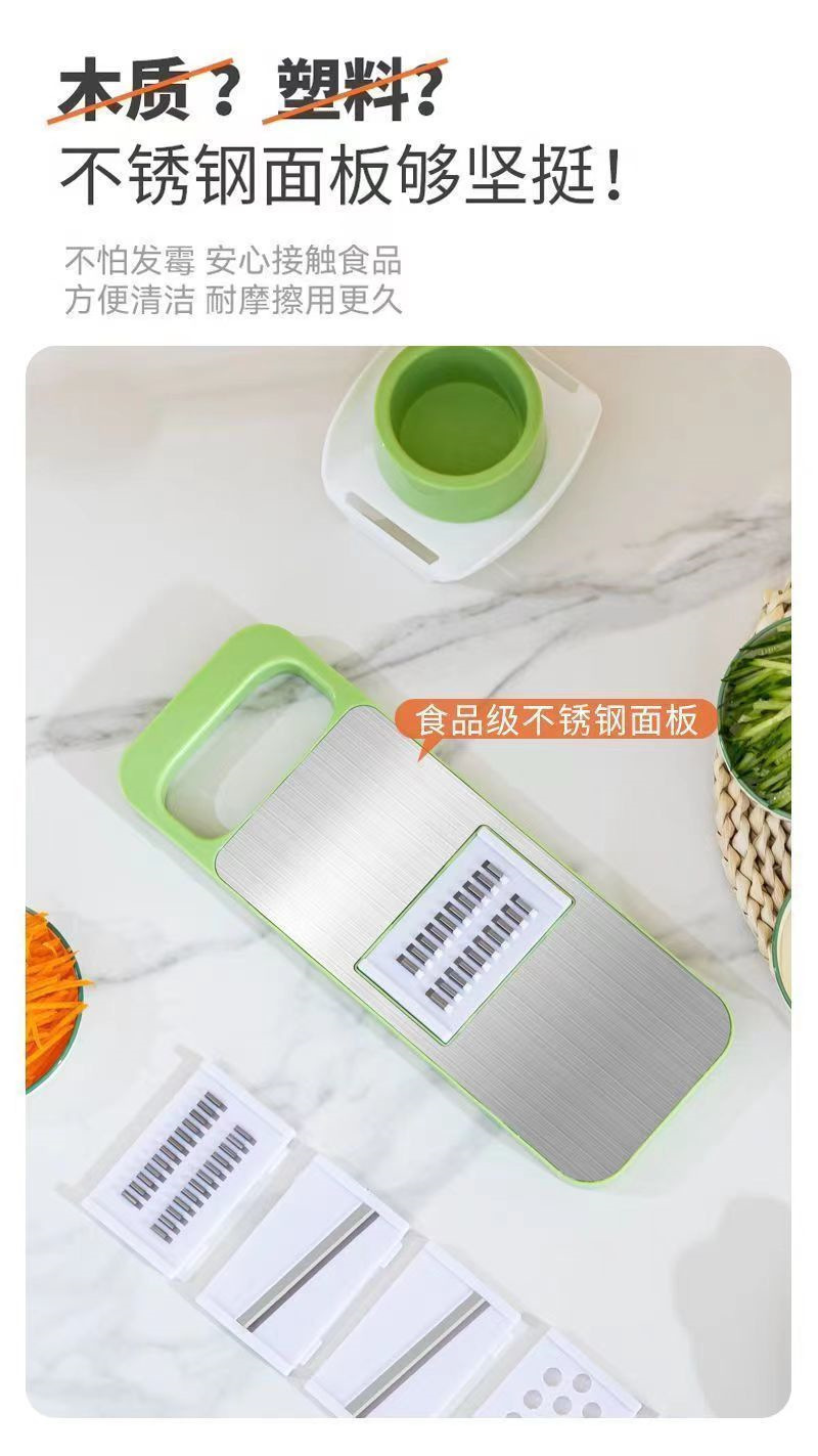 【秒杀❗️9.9到手🔥多功能擦丝器】花样切菜 食品级不锈钢 刀片随意切换 秒变大厨!厨房切菜器萝卜丝家用刨丝器塑钢线切片机不伤手细丝