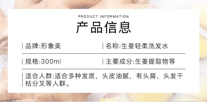 形象美 生姜洗发水保湿清爽洗发露 柔顺 何首乌洗发水洗发露