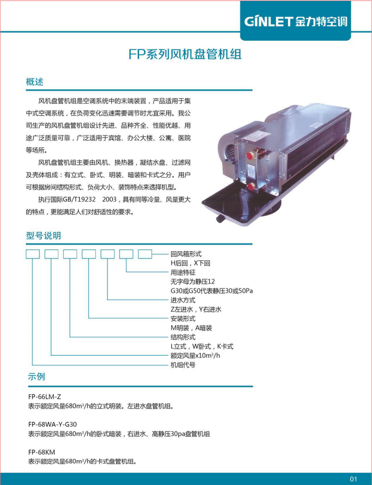 商品描述:金力特FP-85 风机盘管暗装式 左向 货品代码83103