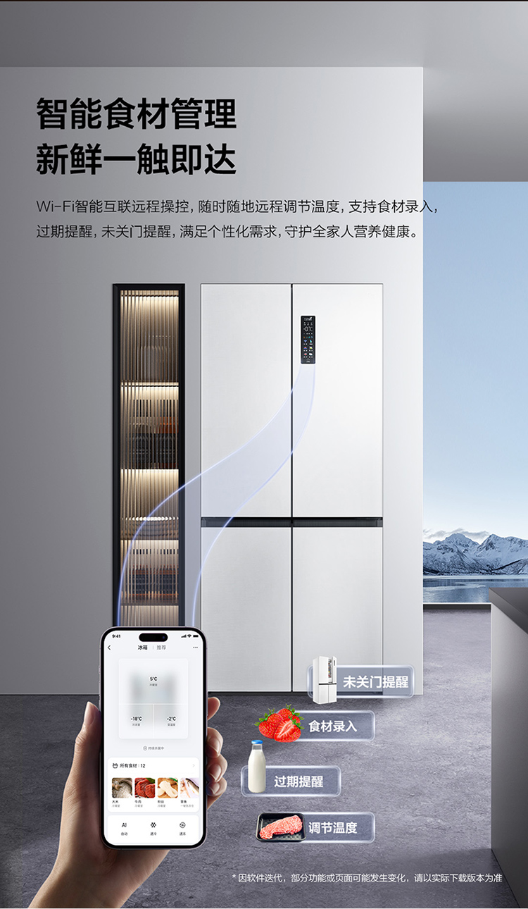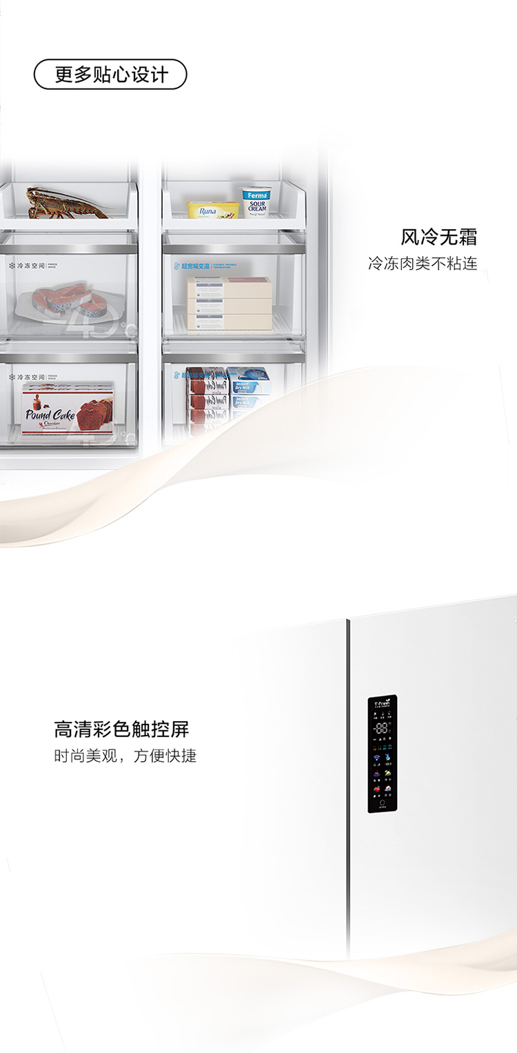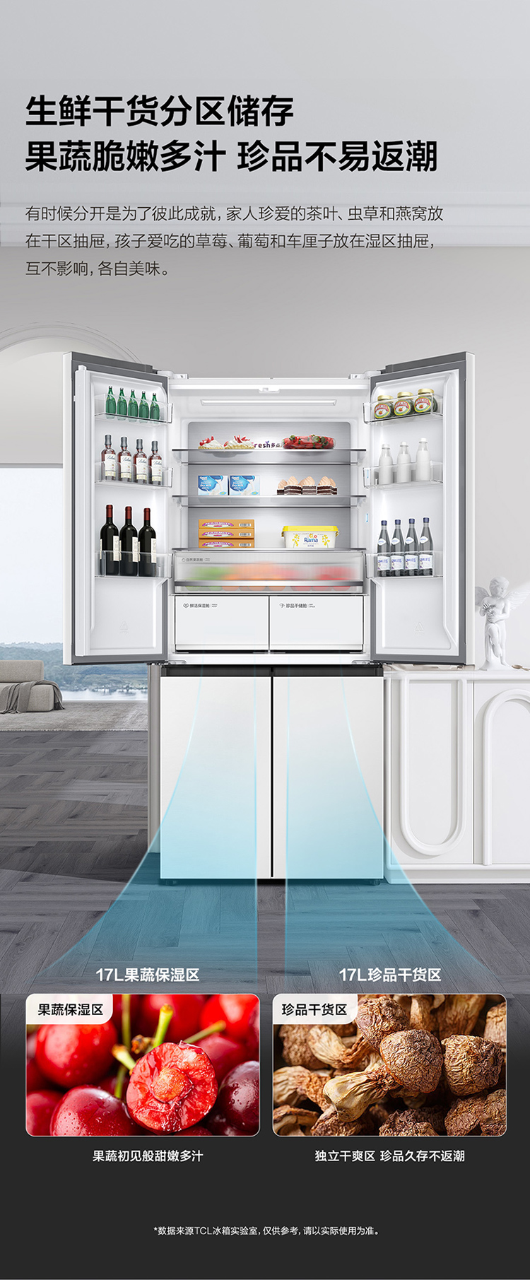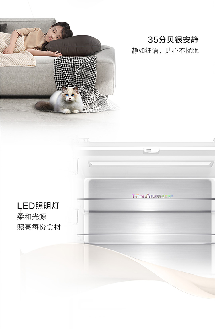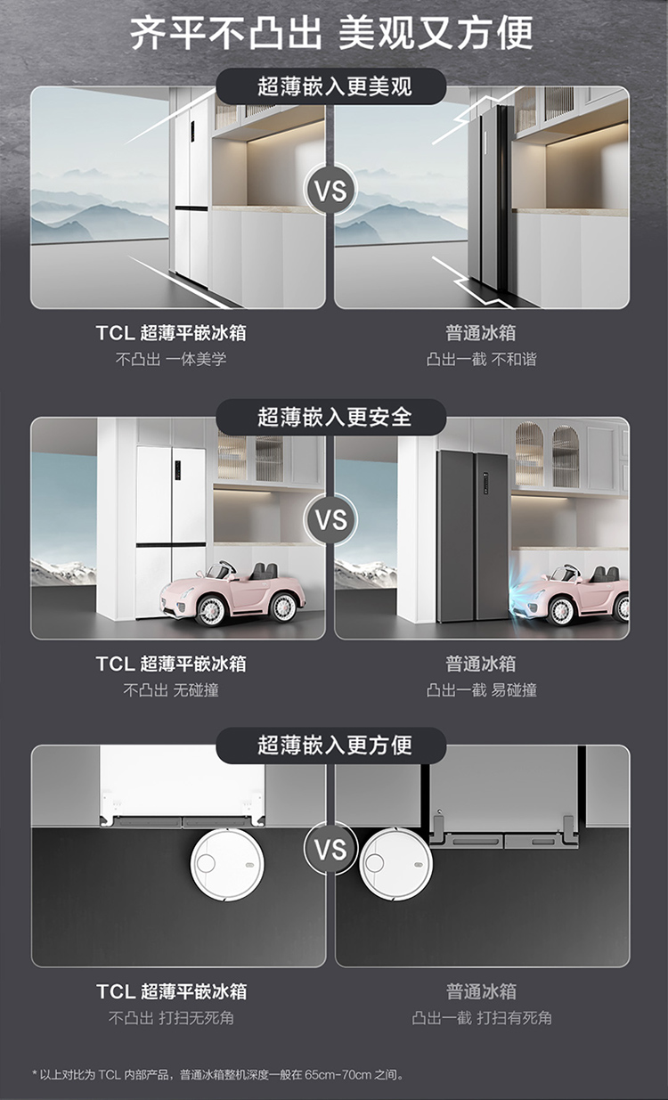 TCL 460升T9十字四开门58cm超薄零嵌入式底部散热双净味宽幅变温冰箱 R460T9-UQ