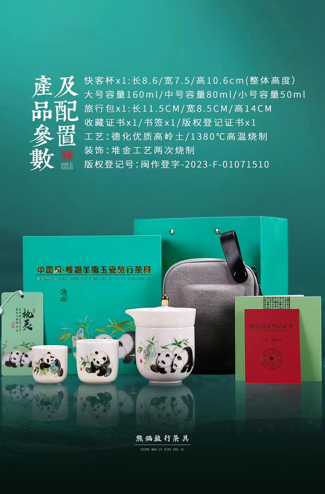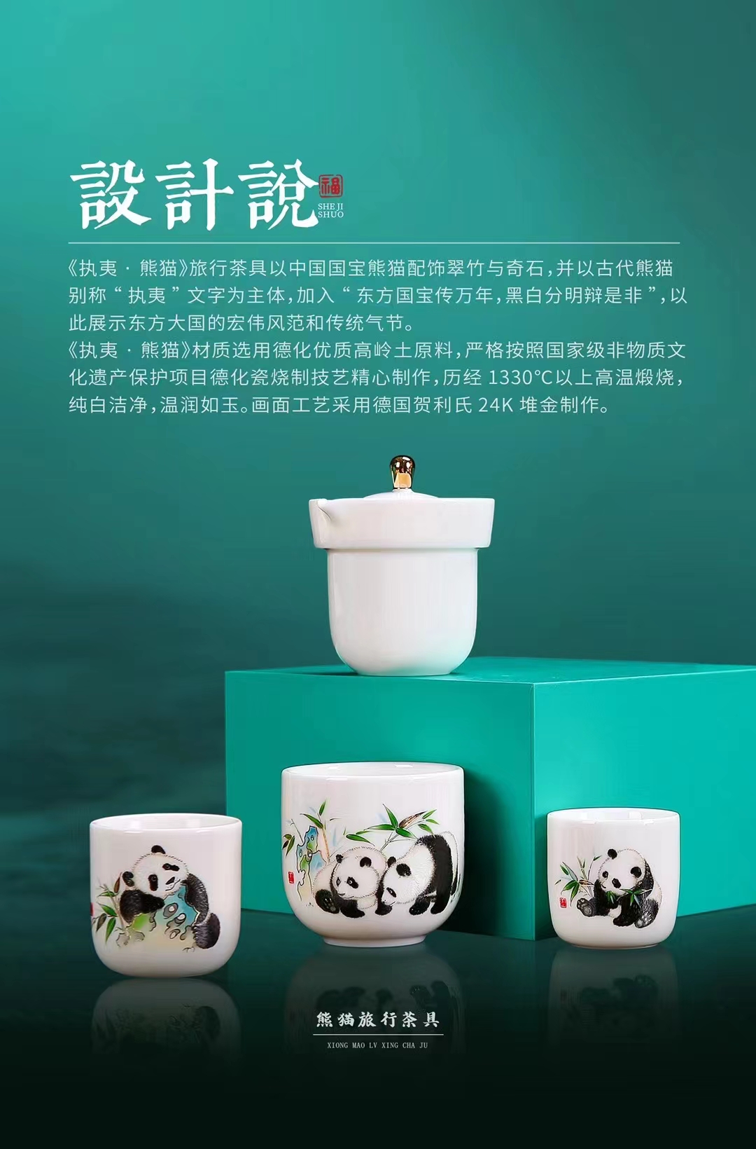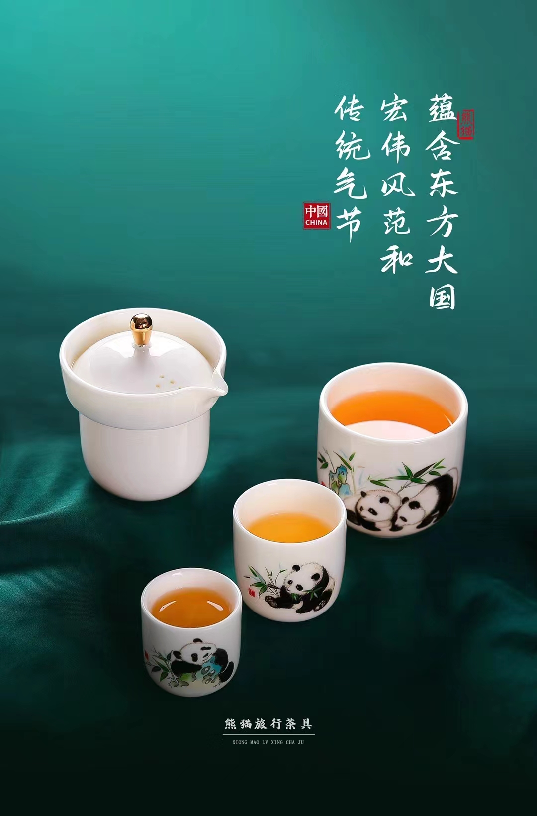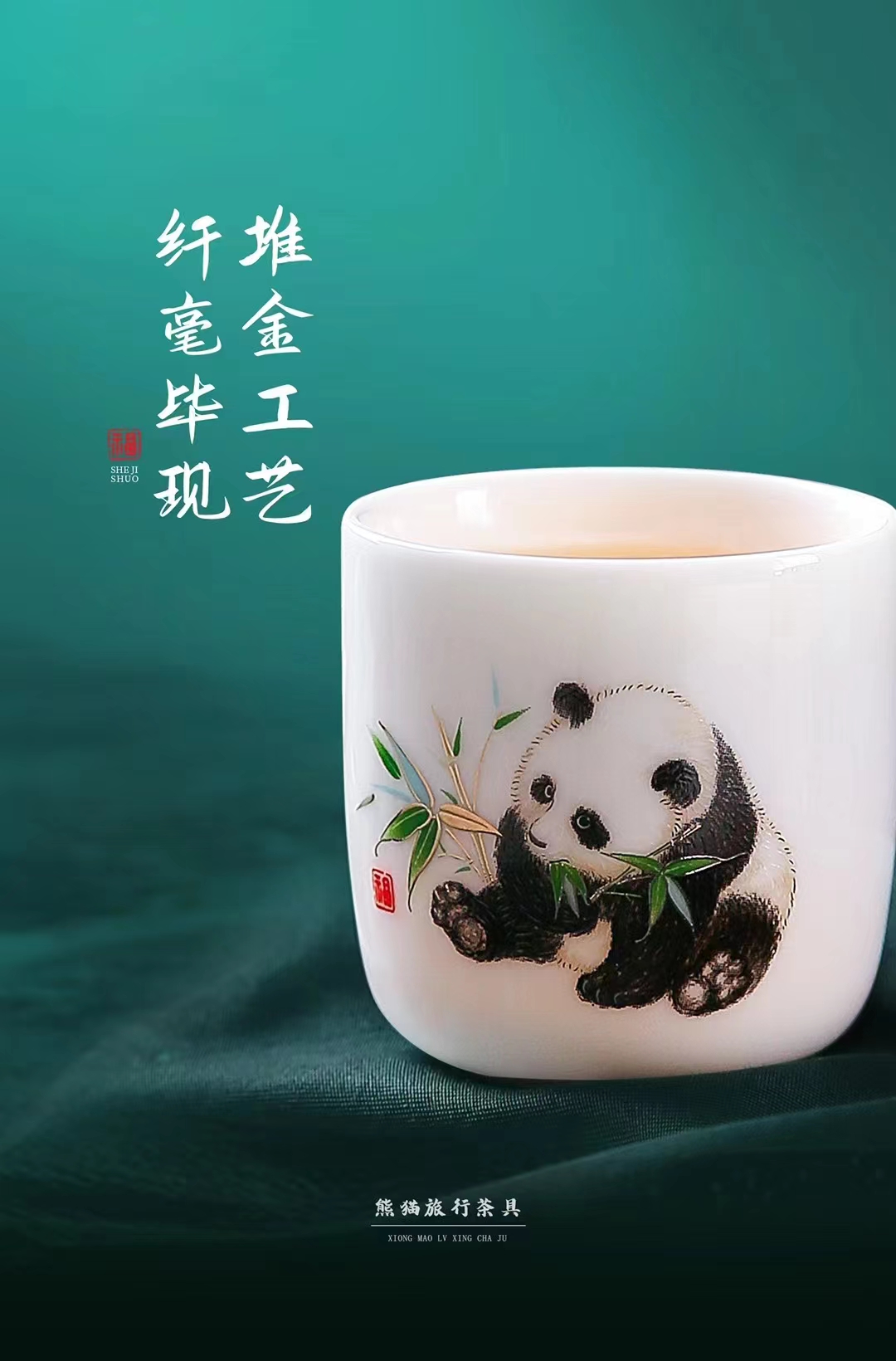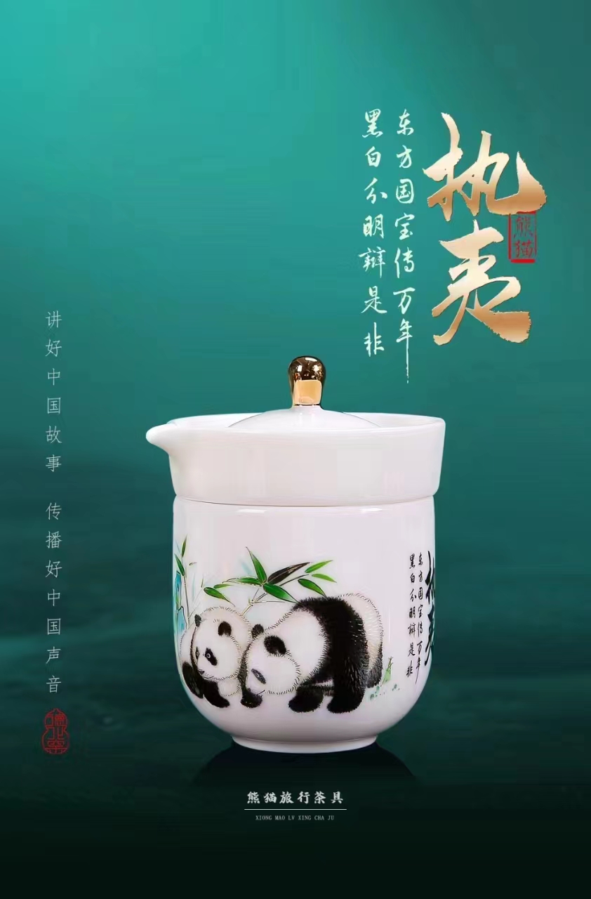 《执夷-熊猫》熊猫旅行茶具,徐建勇老师签章,堆金工艺 温润如玉 通透洁白,精美好礼 馈赠佳选