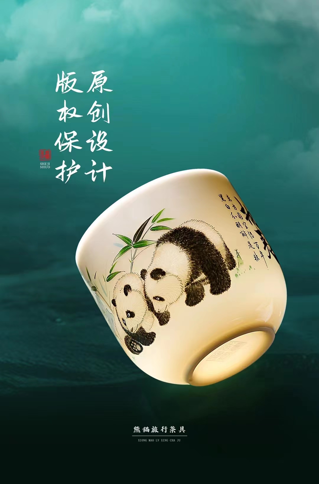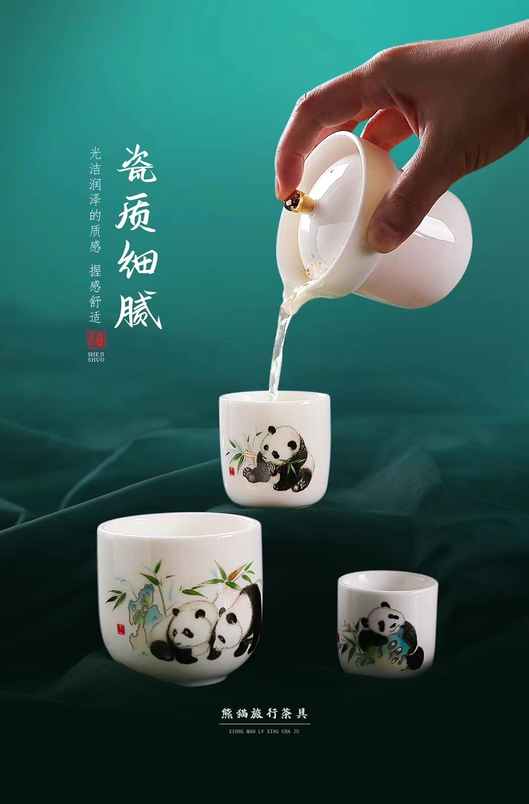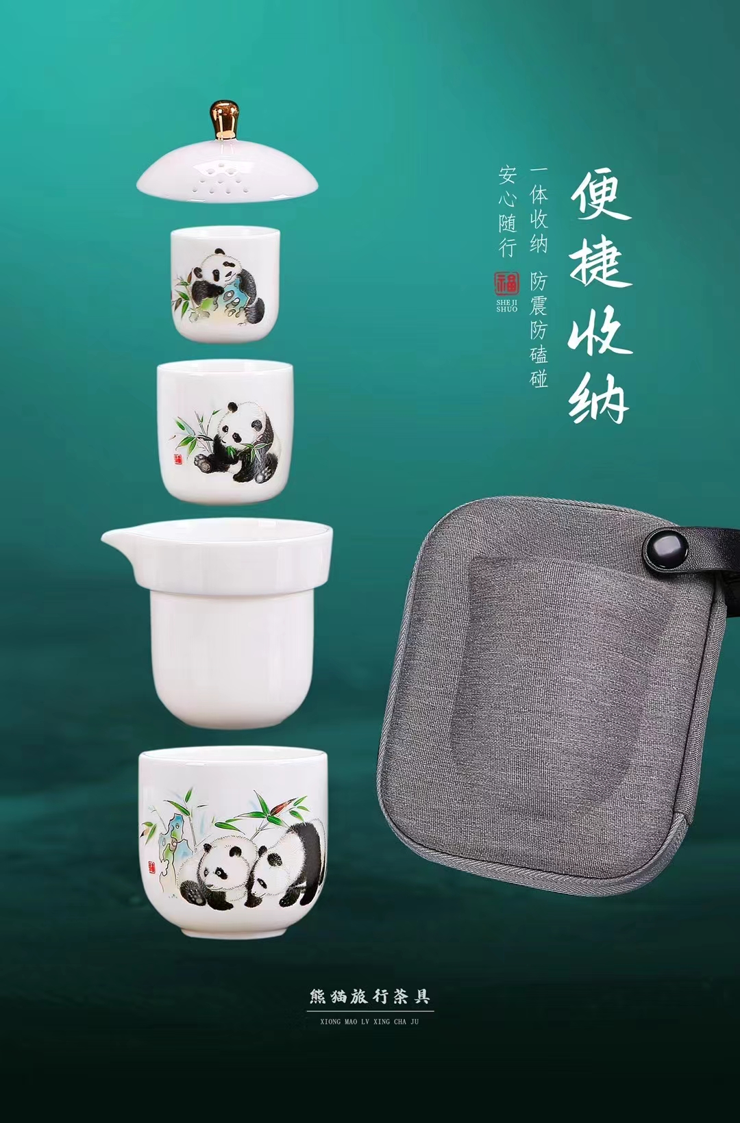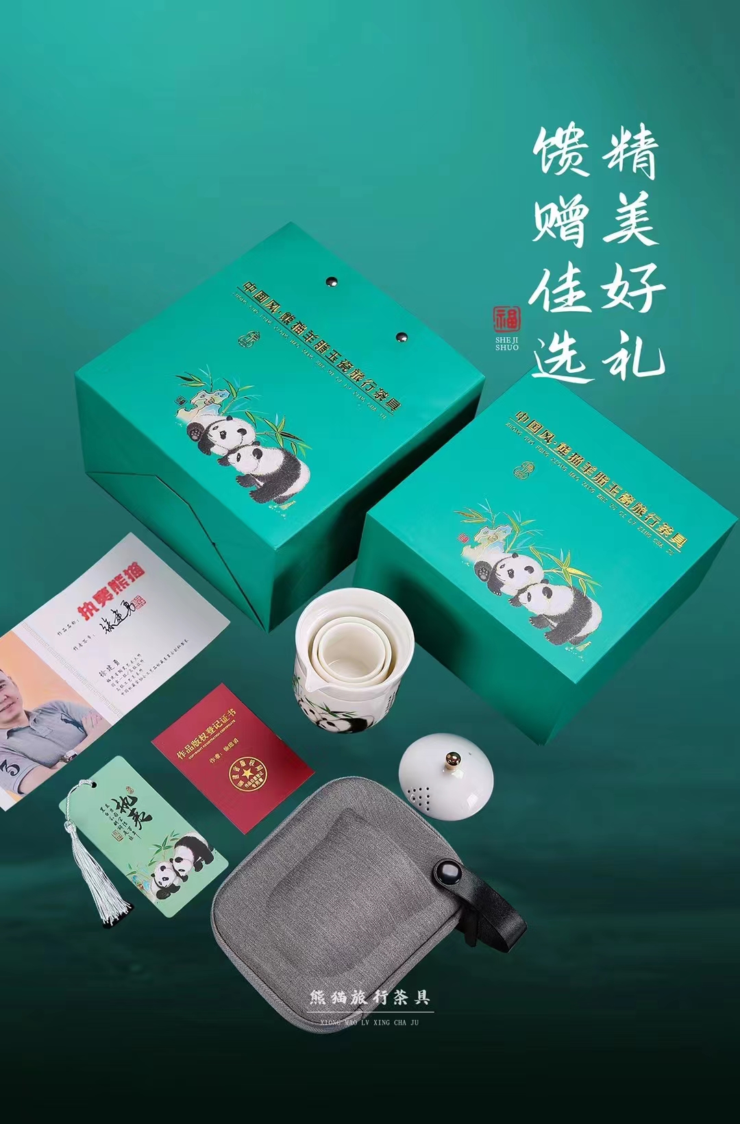 《执夷-熊猫》熊猫旅行茶具,徐建勇老师签章,堆金工艺 温润如玉 通透洁白,精美好礼 馈赠佳选