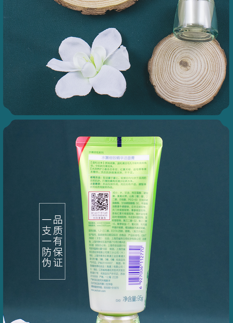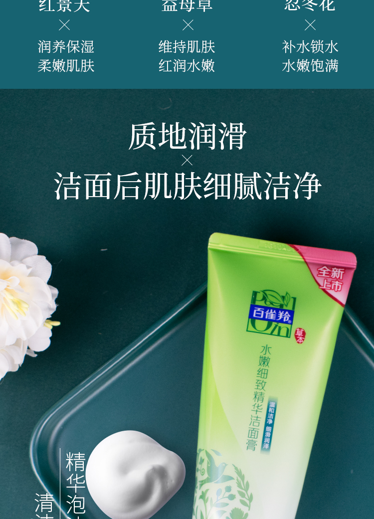 【两支装】百雀羚水嫩细致精华洁面膏90g