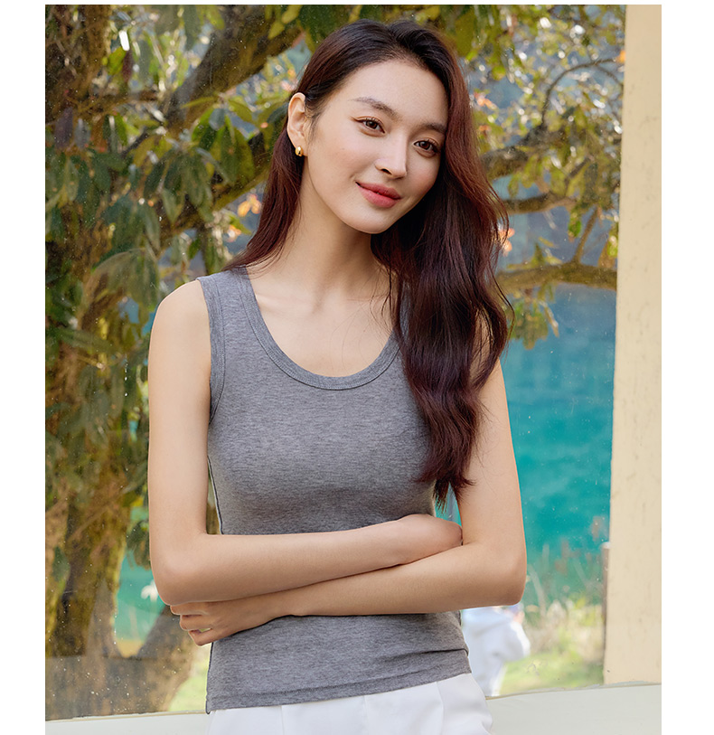 玳莎2025年春季新款U领无袖吊带背心女修身显瘦百搭内搭外穿上衣 FA32001