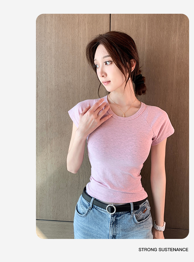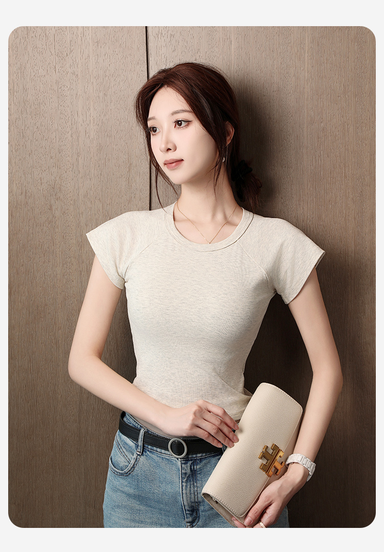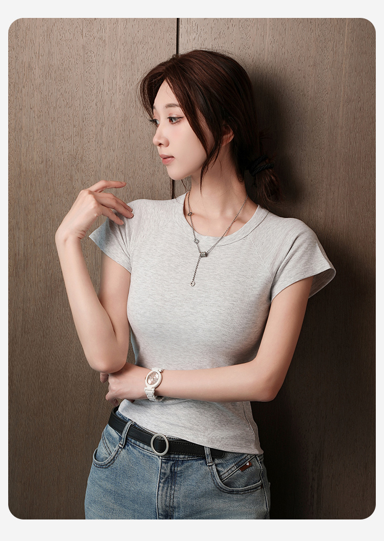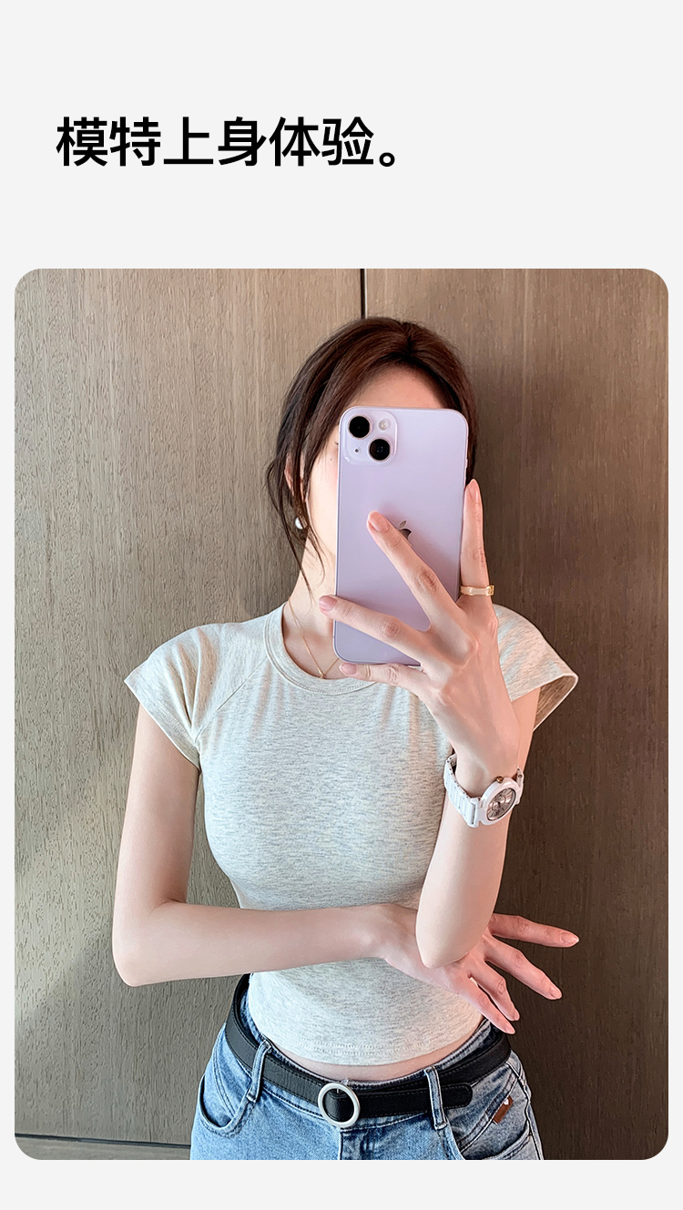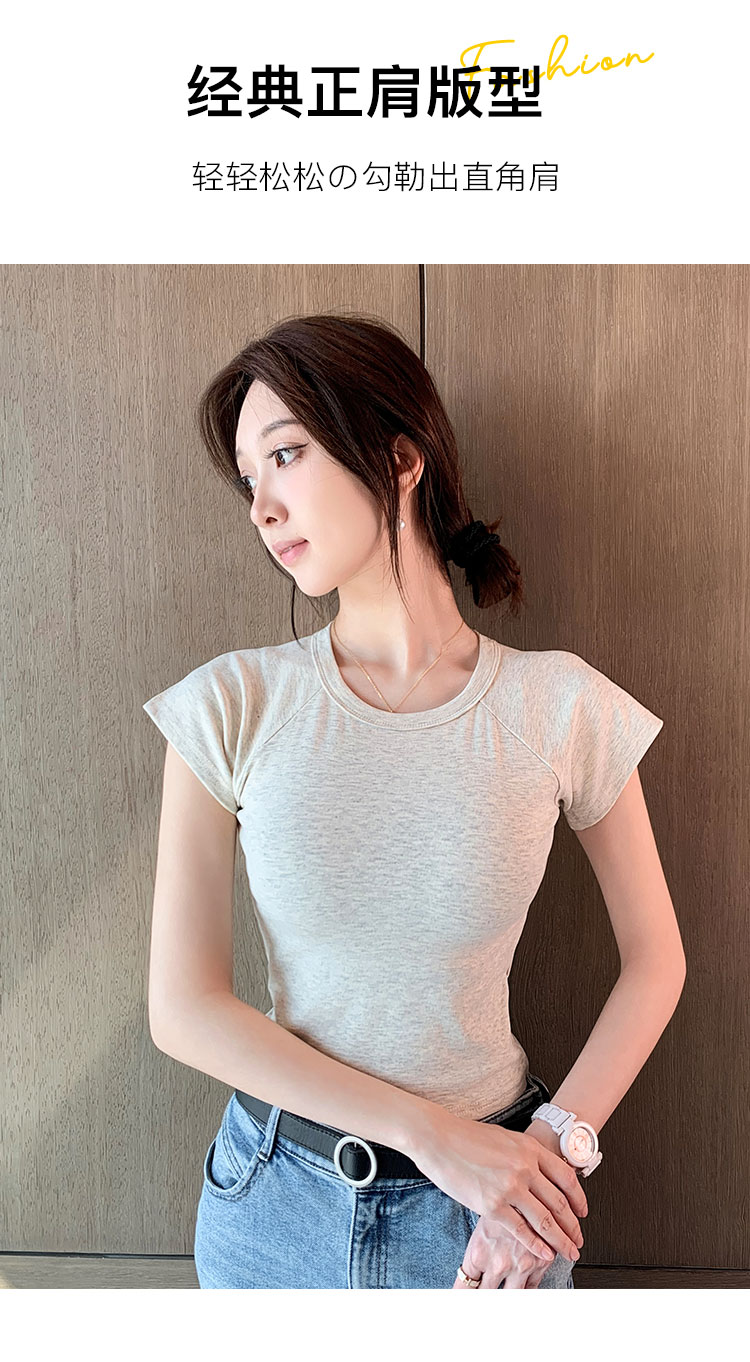 【亲肤舒适】夏季圆领彩棉短袖T恤上衣女时尚内搭外穿修身显瘦105彩棉短袖