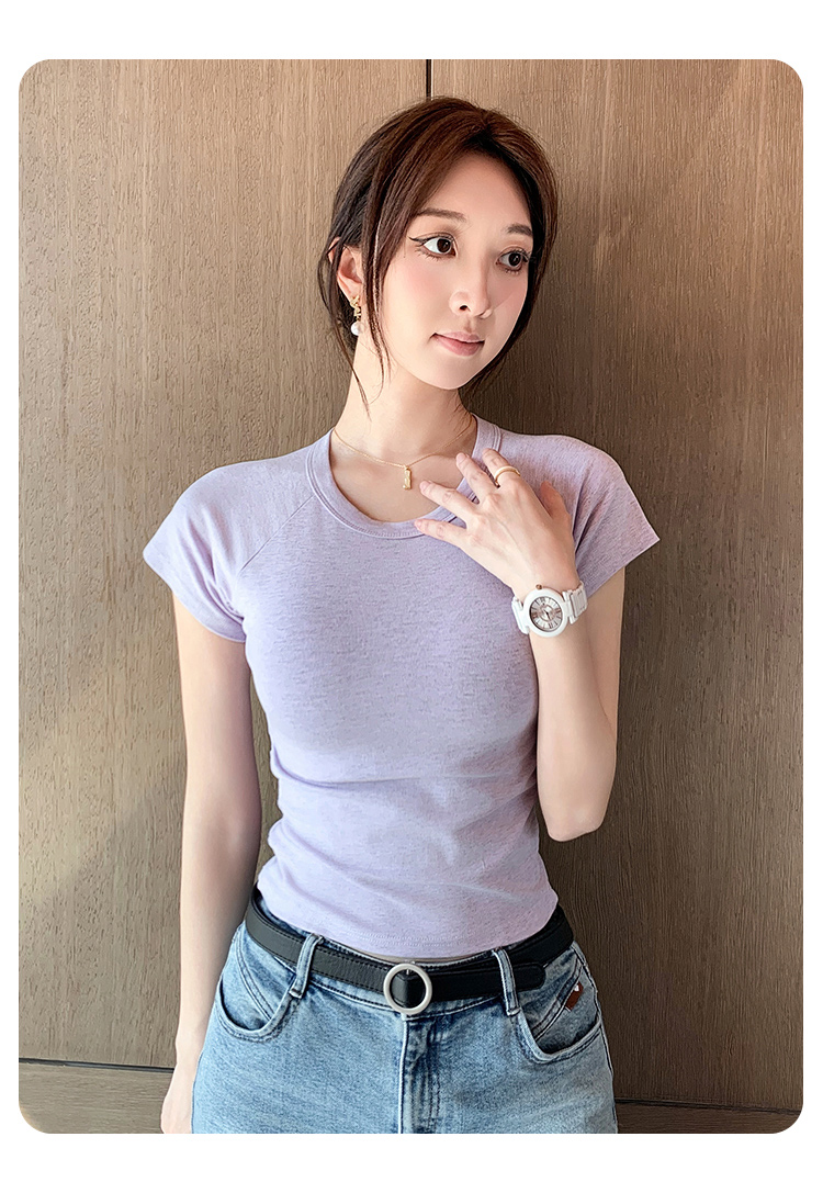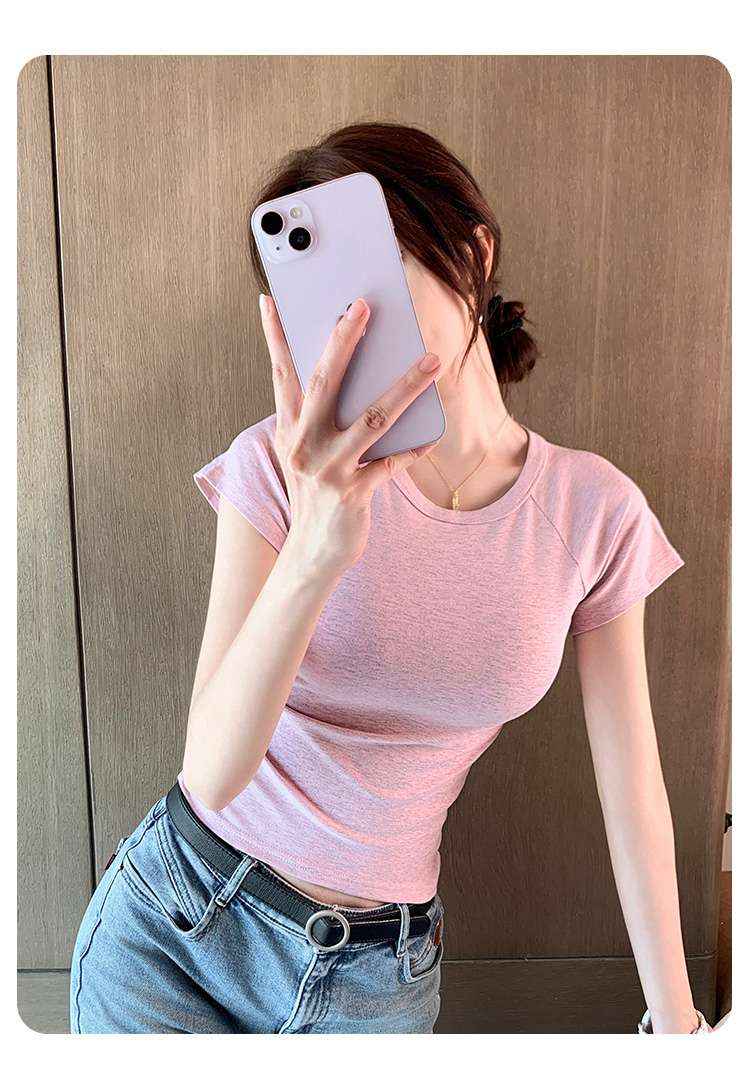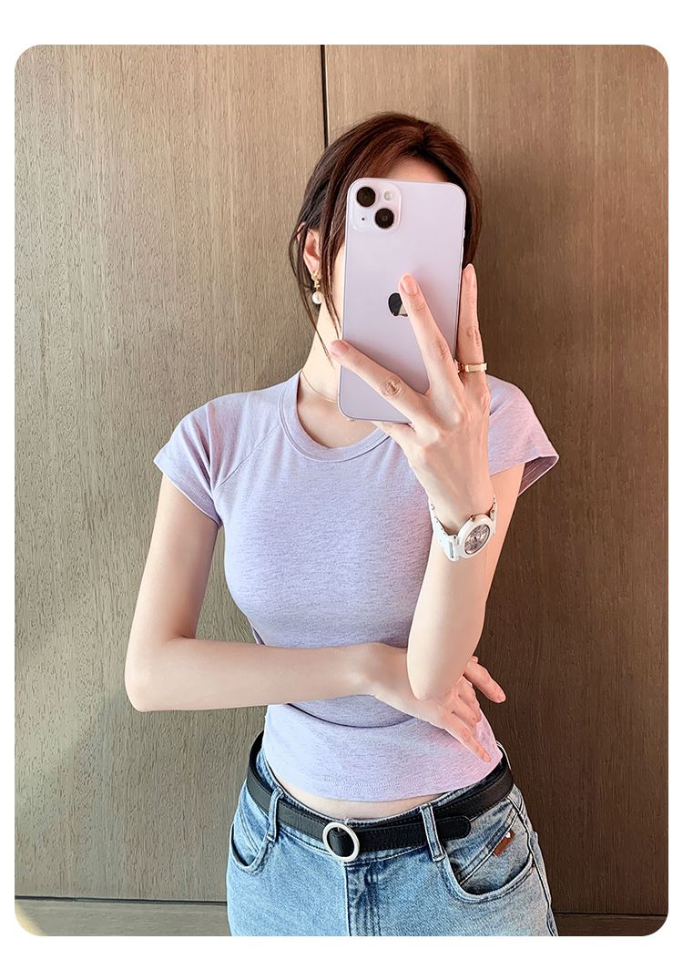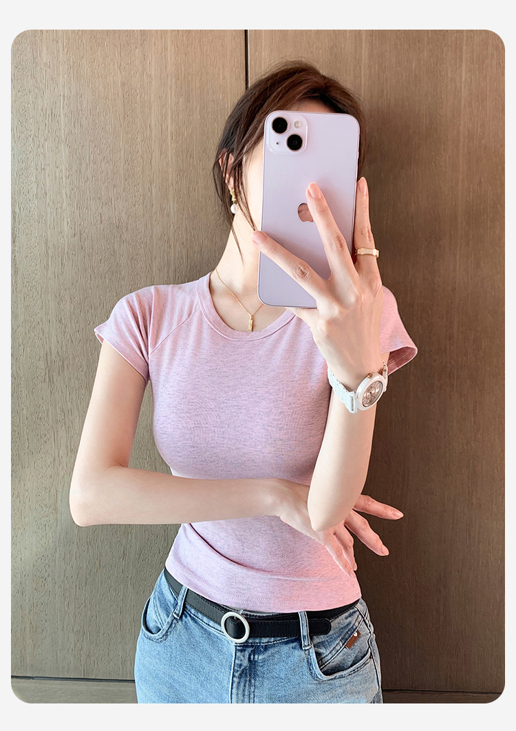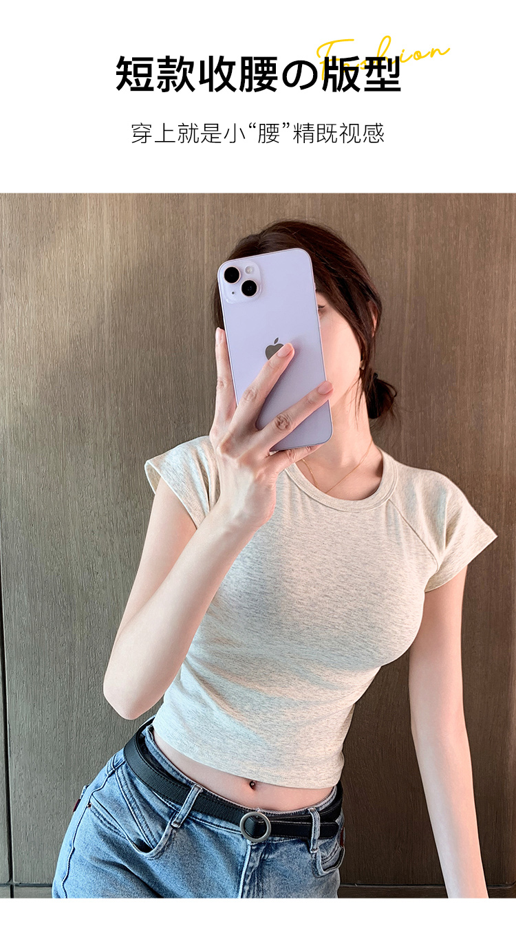 【亲肤舒适】夏季圆领彩棉短袖T恤上衣女时尚内搭外穿修身显瘦105彩棉短袖