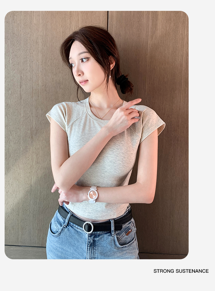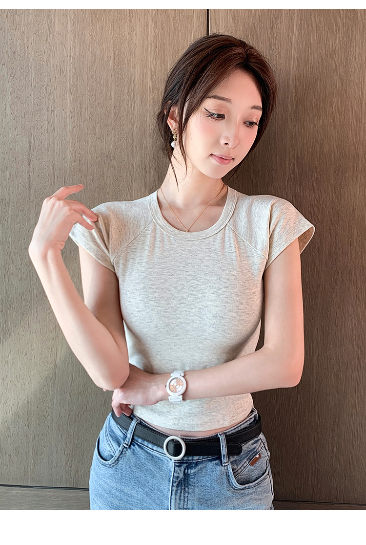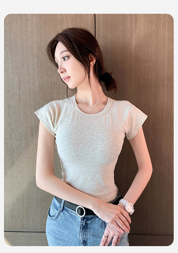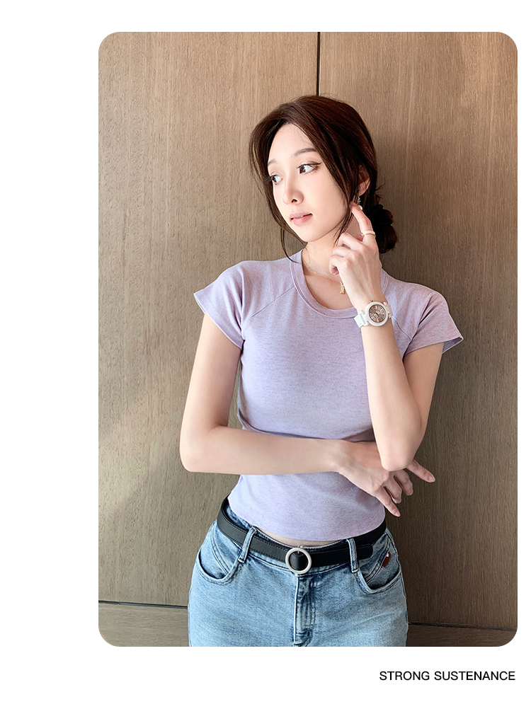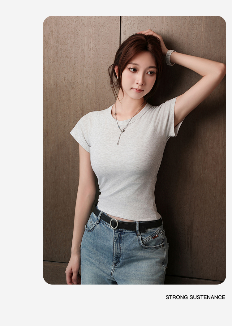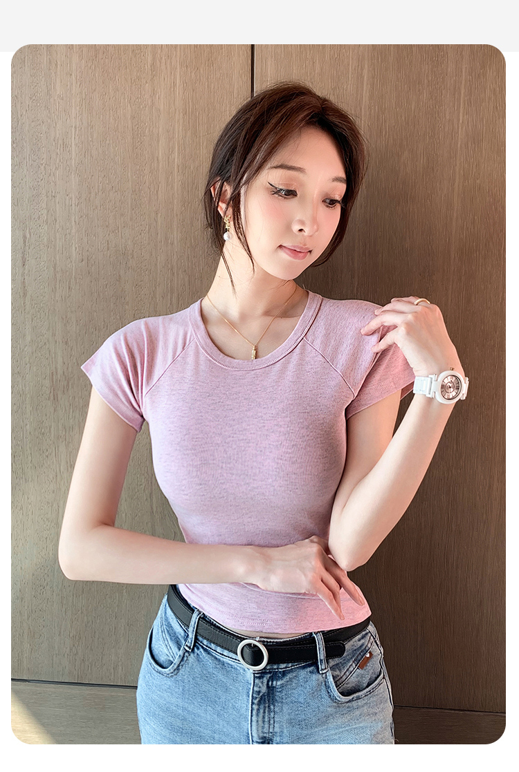 【亲肤舒适】夏季圆领彩棉短袖T恤上衣女时尚内搭外穿修身显瘦105彩棉短袖