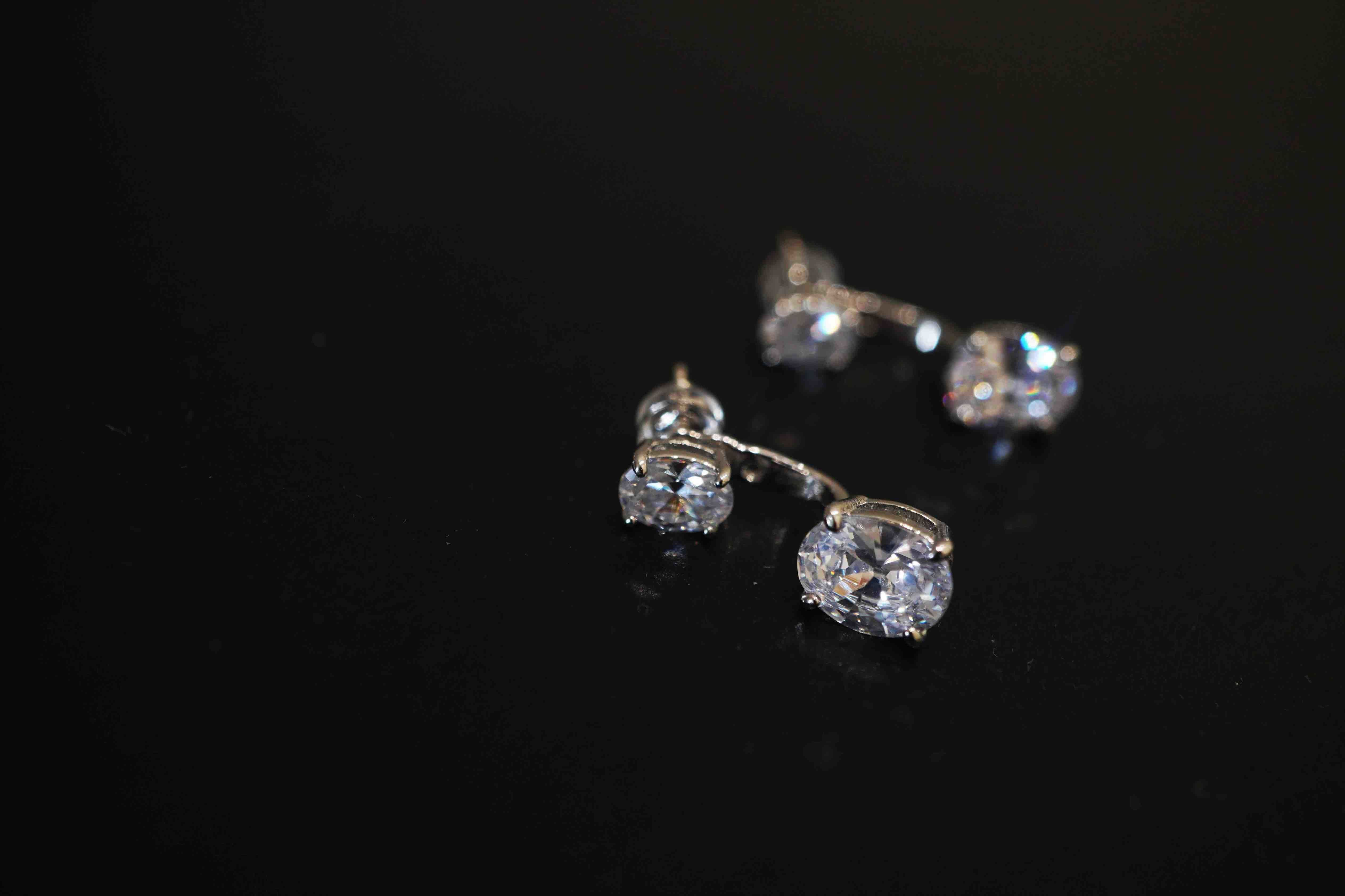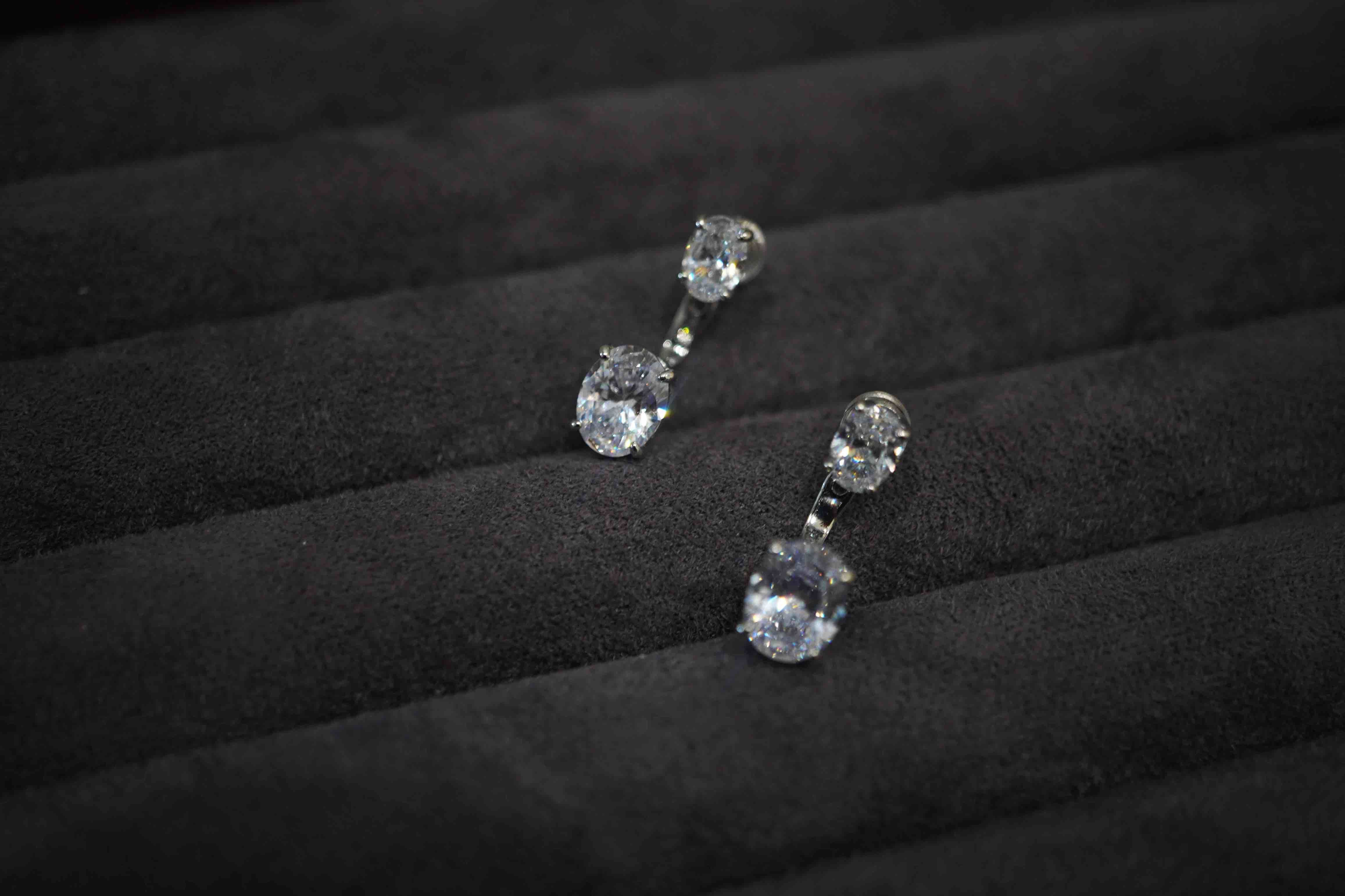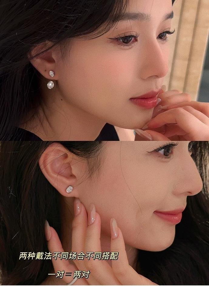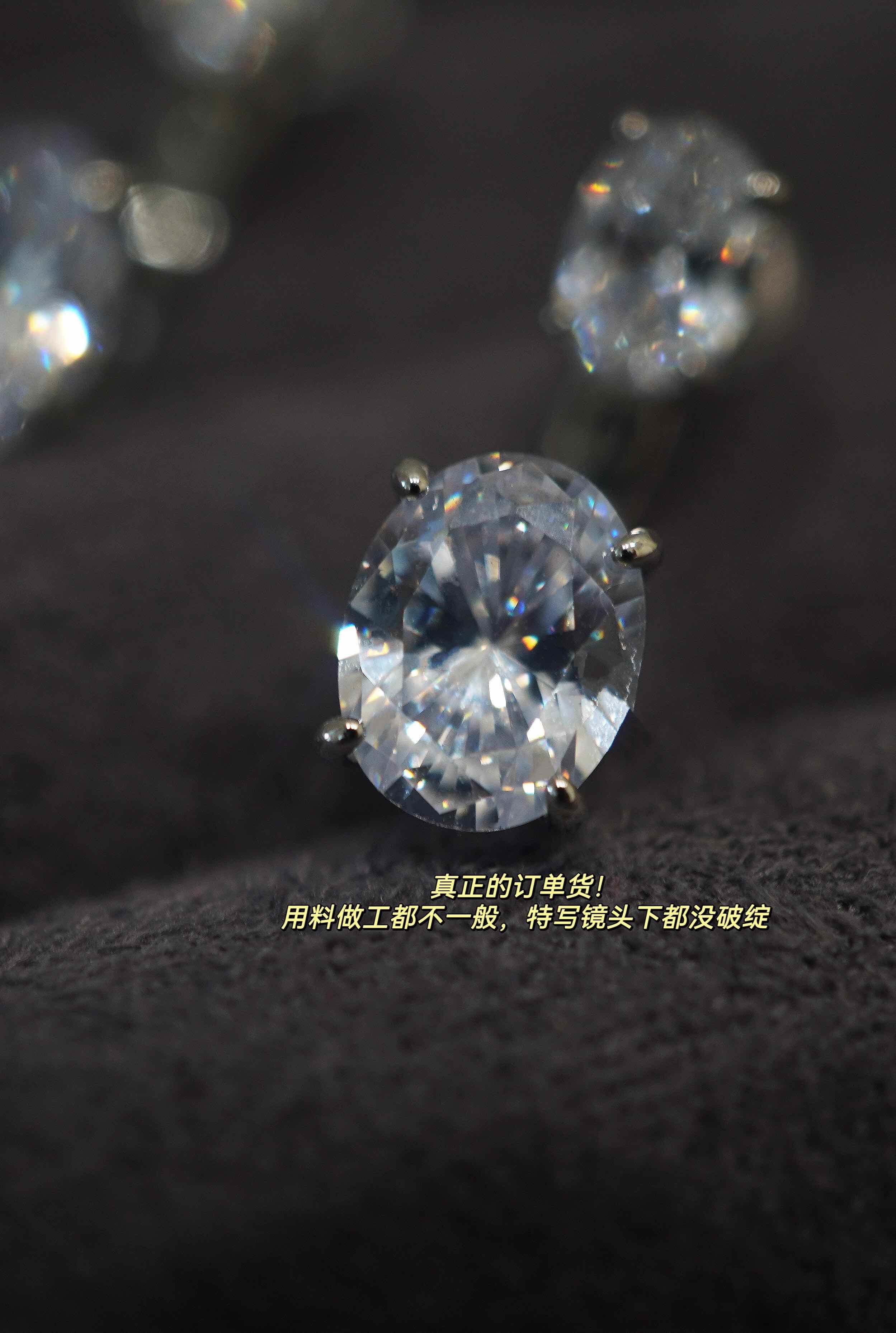 简约高级感~悬浮感耳钉,太喜欢了!两颗椭圆真钻组合。
