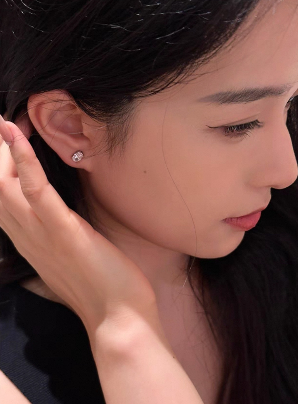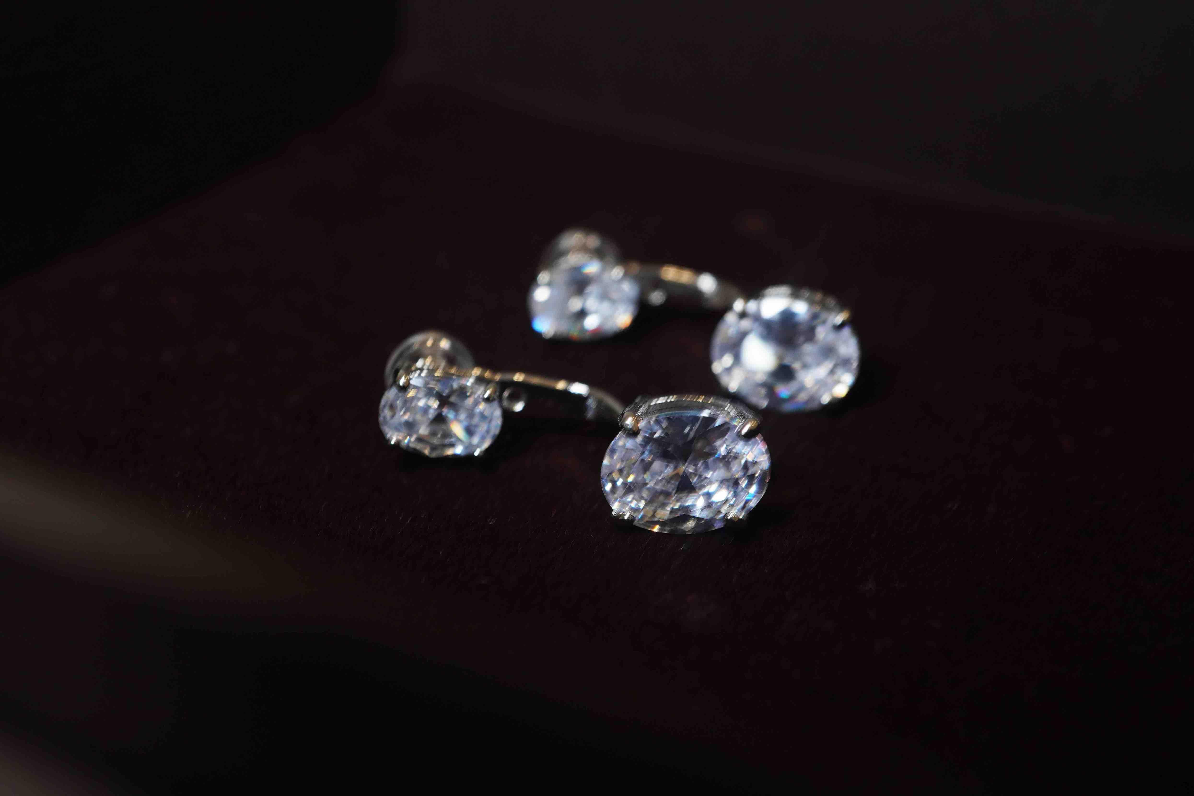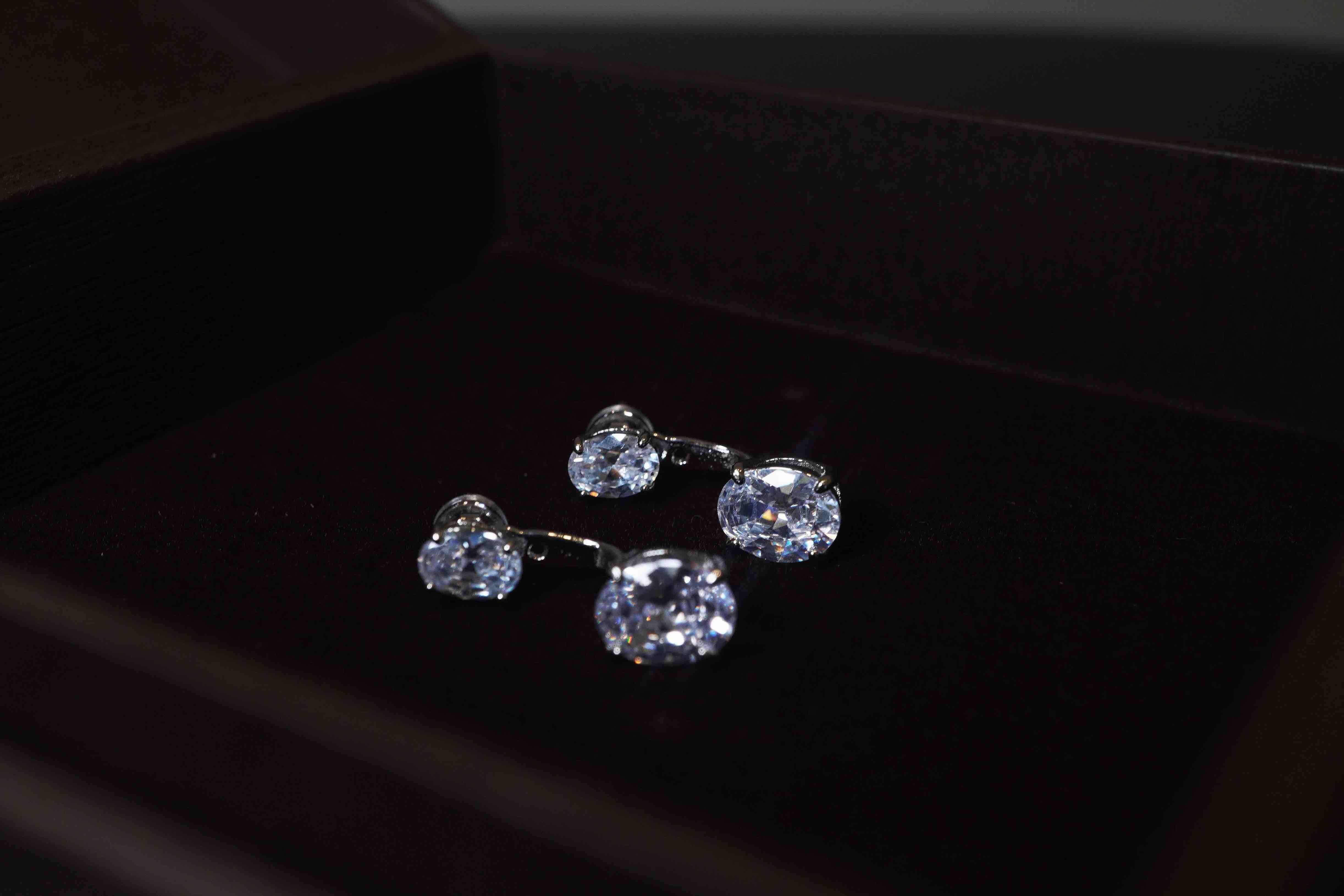 简约高级感~悬浮感耳钉,太喜欢了!两颗椭圆真钻组合。