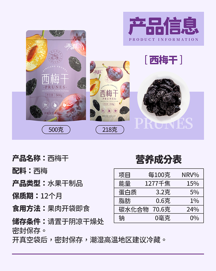 【新疆好物】新疆西梅干 个大饱满 酸甜可口 好吃不腻 218g/袋 500g/袋