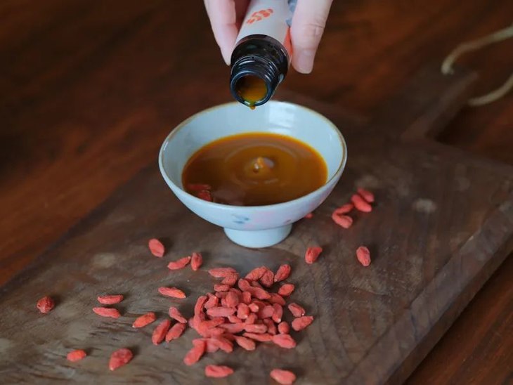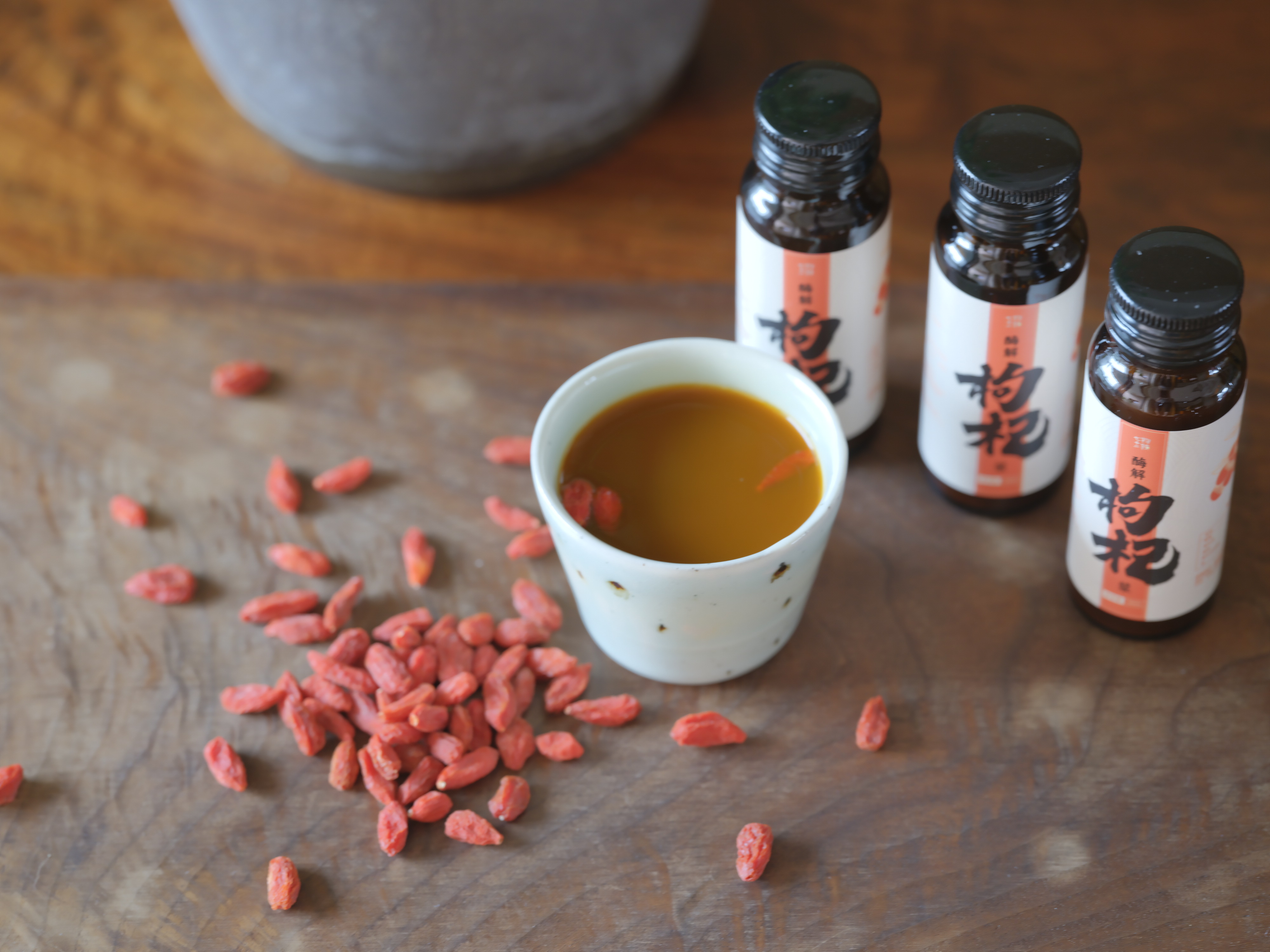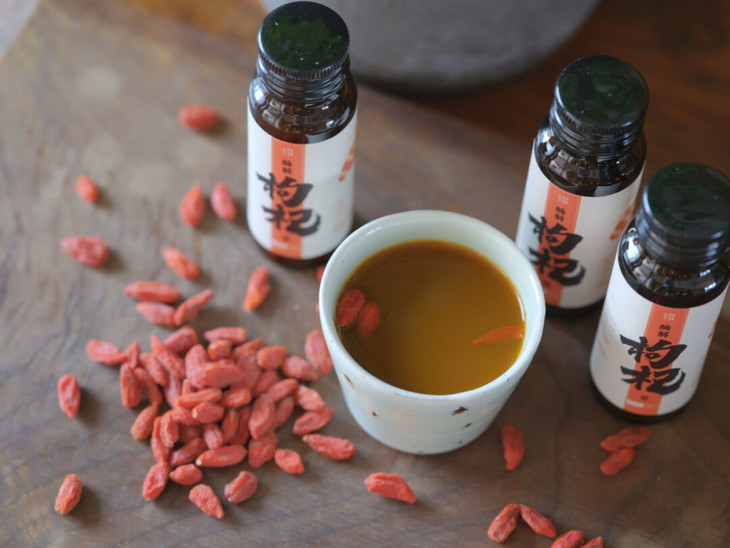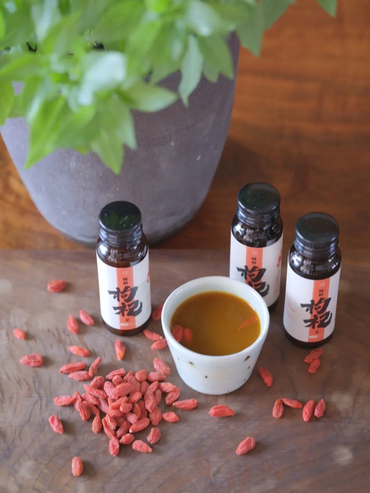 注:枸杞浆实物为液体,不含有原粒枸杞。本页面枸杞浆里的原粒枸杞只为拍摄装饰点缀用。