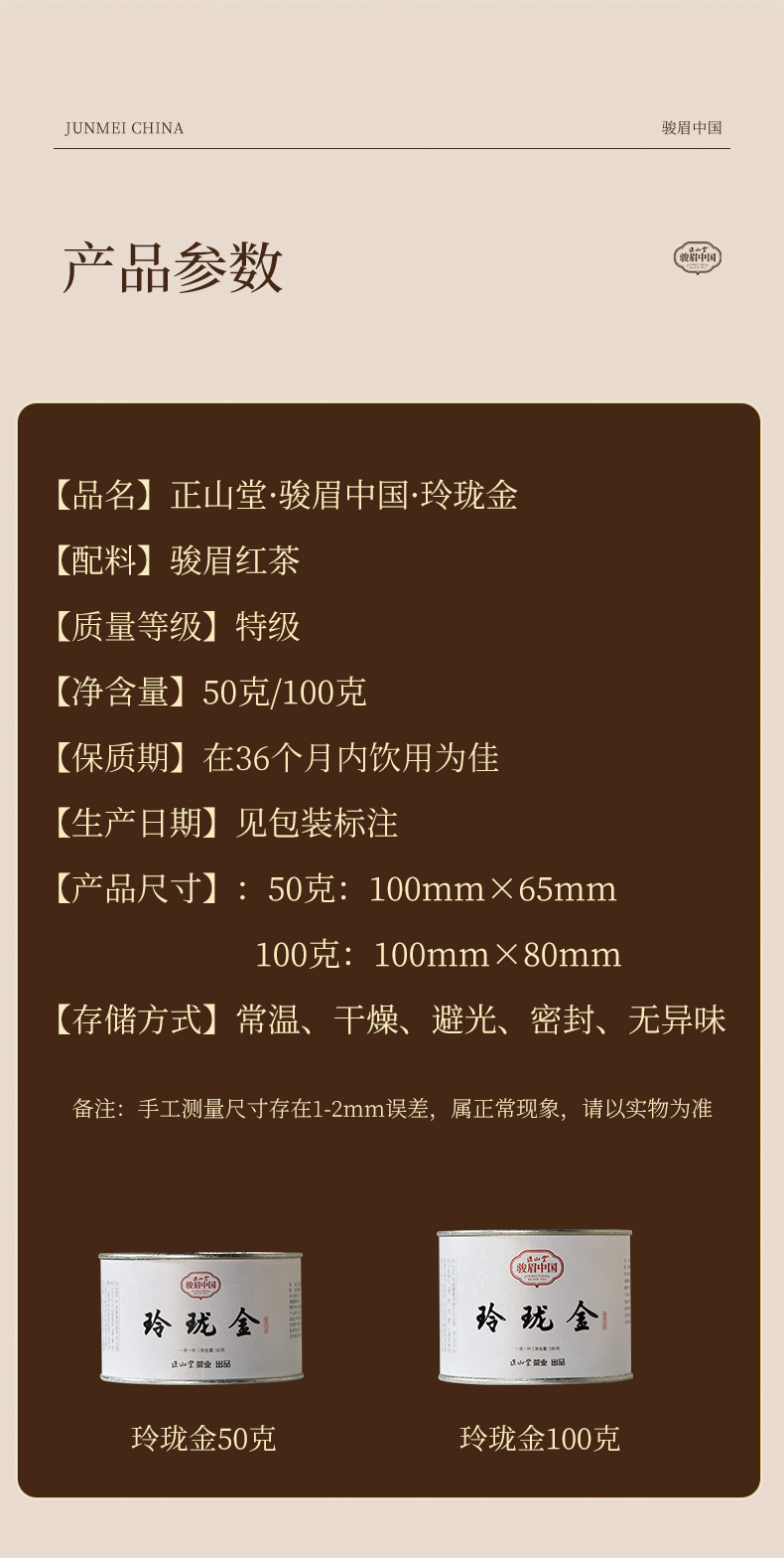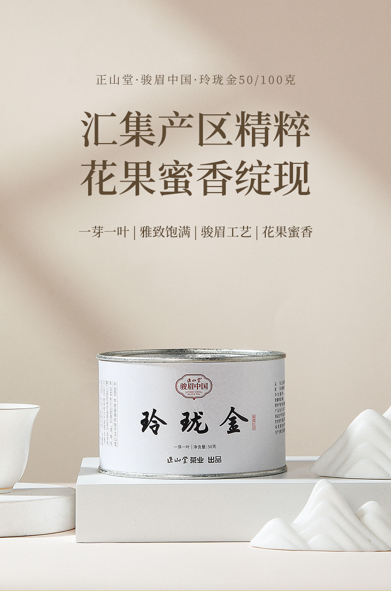 正山堂骏眉中国 玲珑金 一芽一叶特级红茶十大产区茶叶罐装50g/100g/礼盒120g/礼盒200g