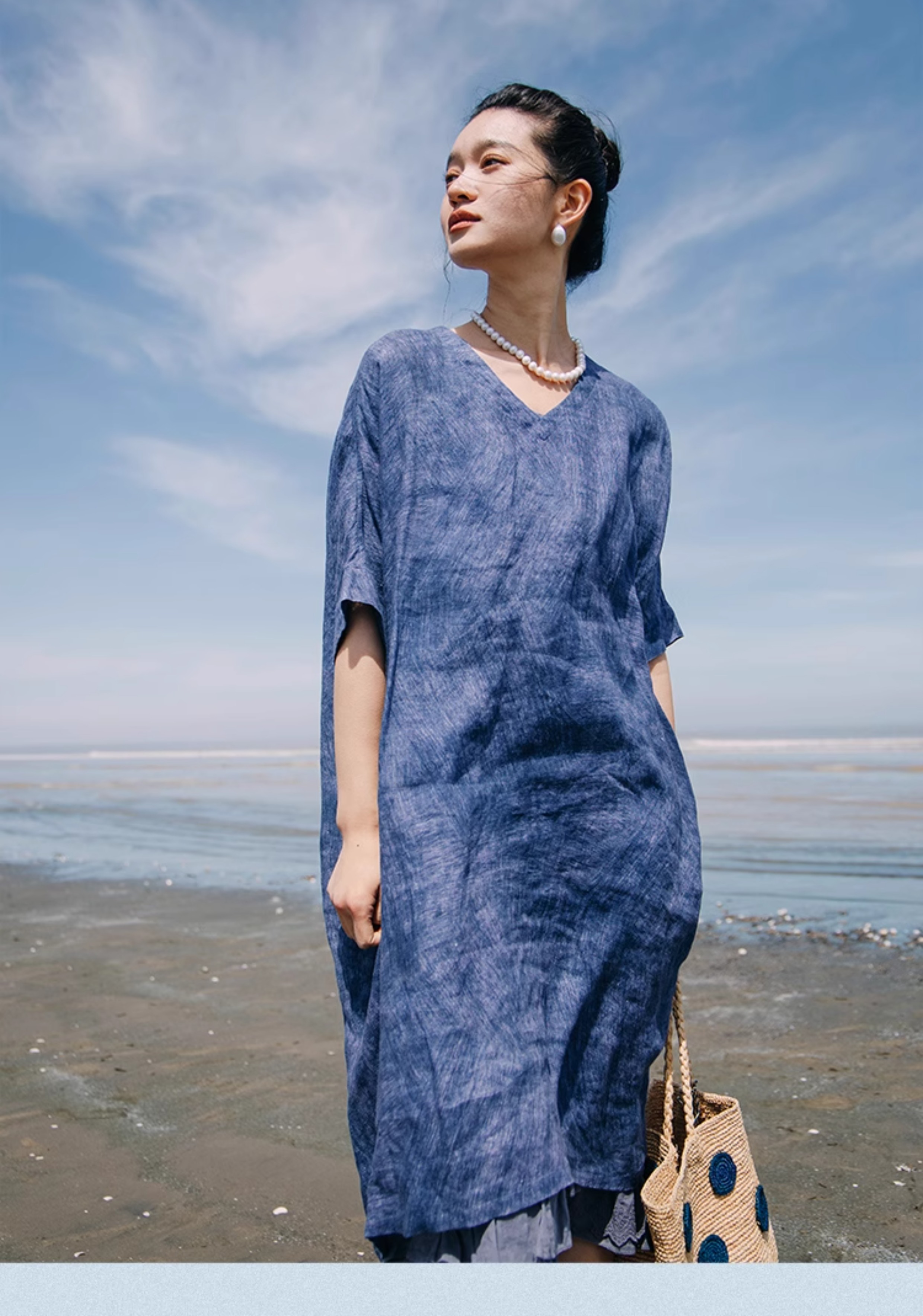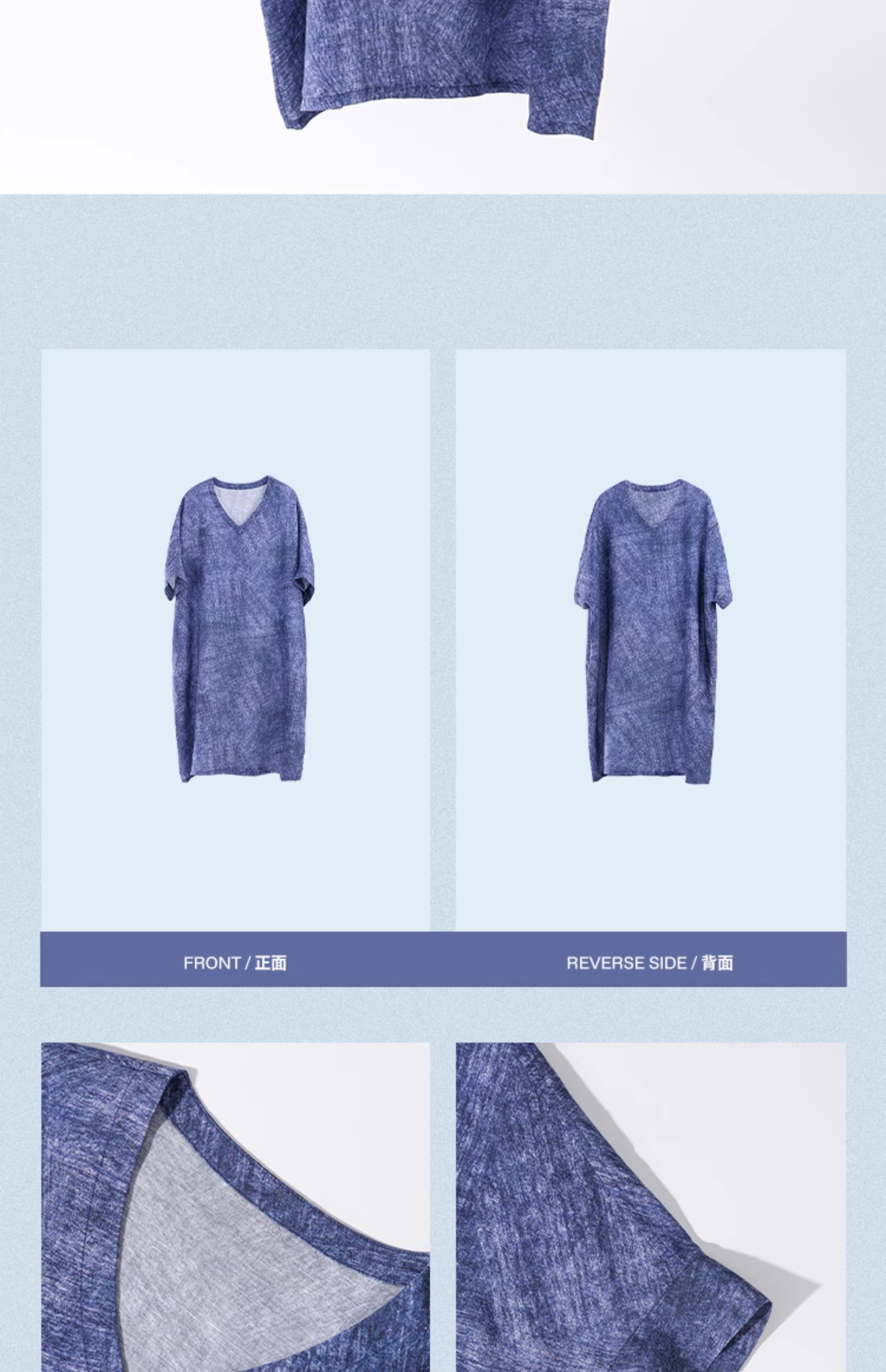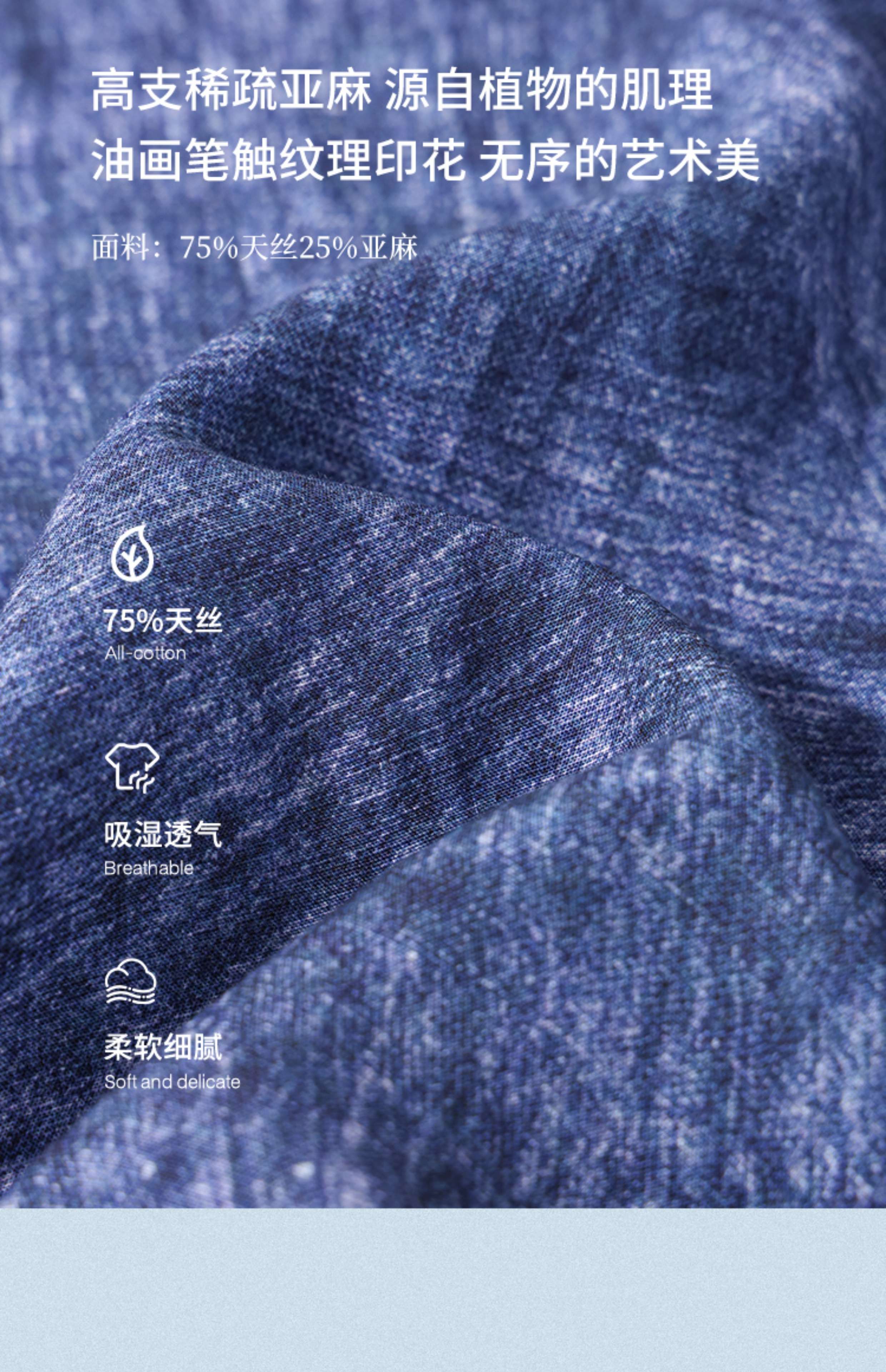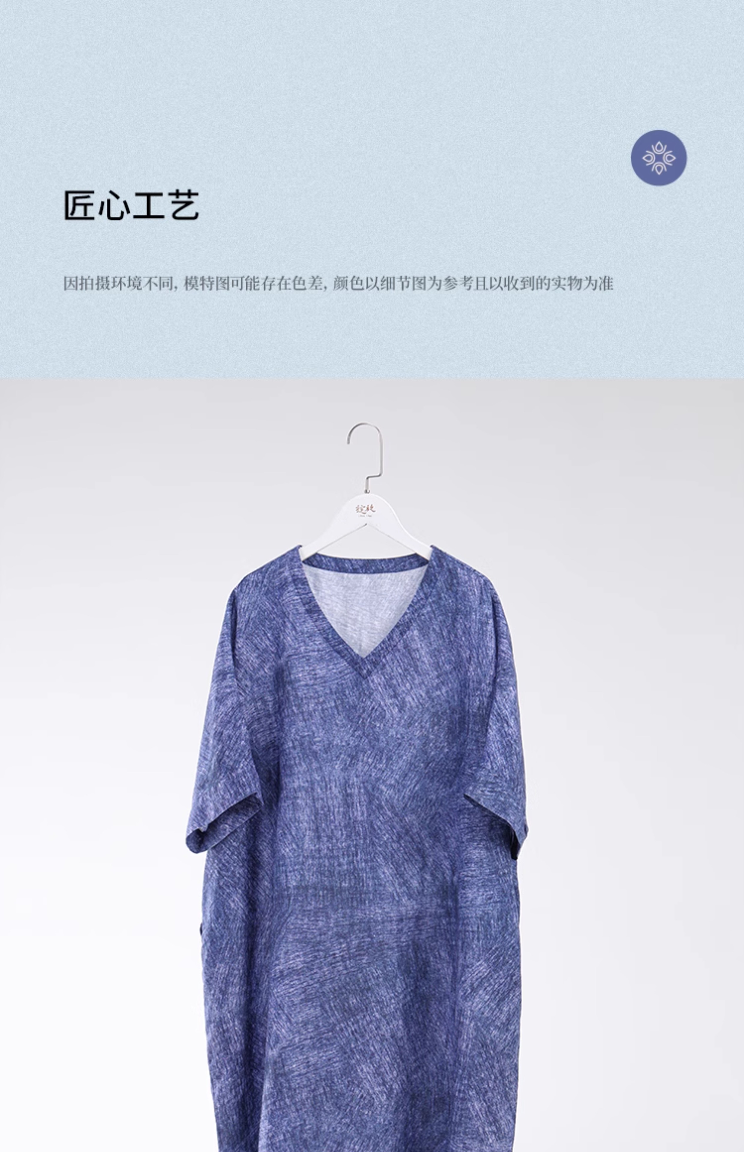 绽放251朵/【入蓝系列】高支天丝亚麻纹理印花v领中袖连衣裙女夏
