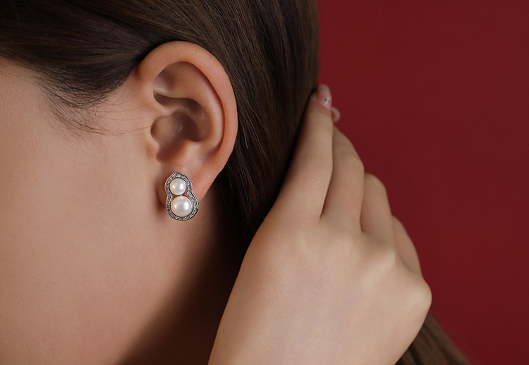 耳钉同样采用花生葫芦造型,与项链呼应。