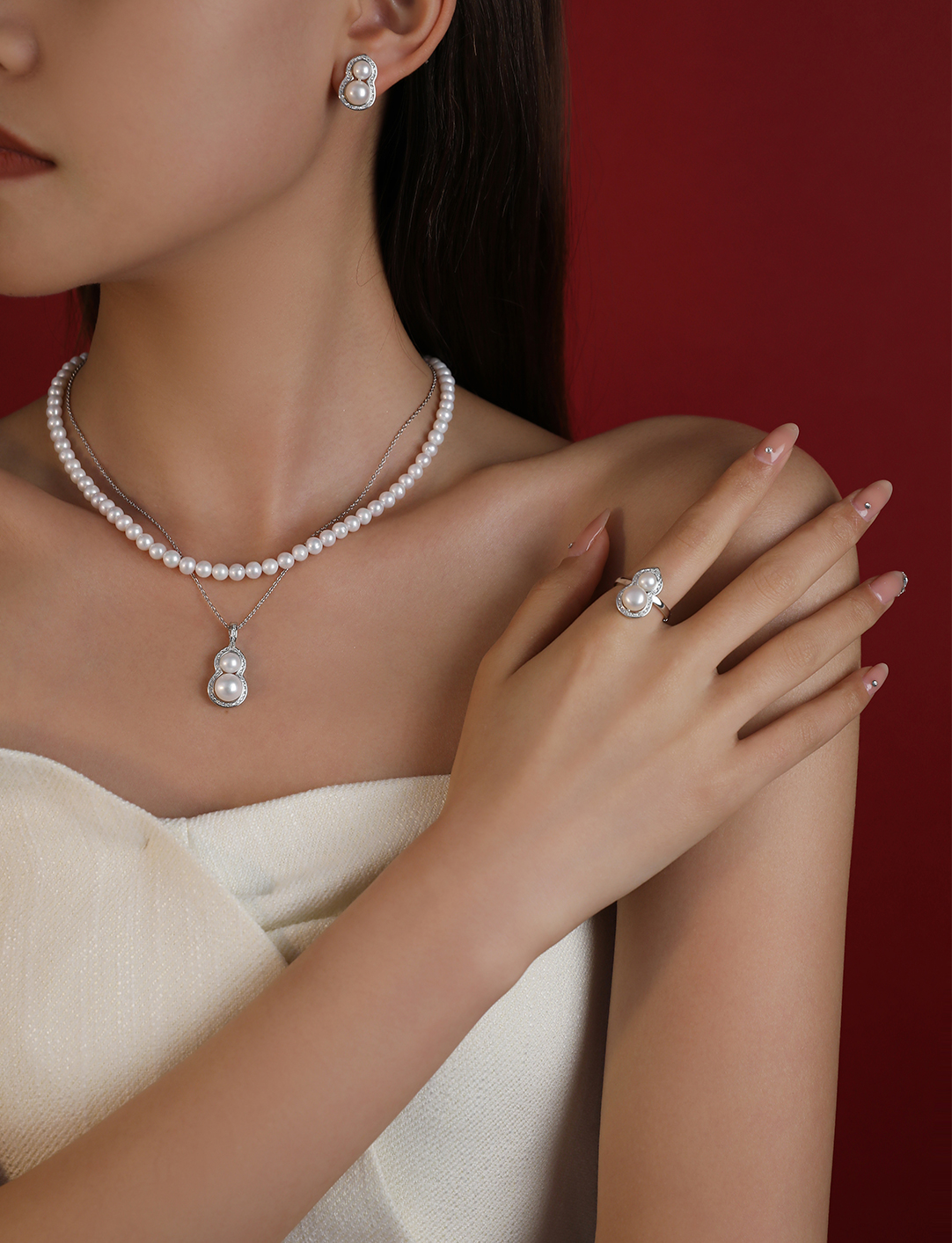 这种将天然形态升华为文化符号的智慧,是当代珠宝设计可追溯的精神本源——正如“葫芦珍珠套装”以现代语汇重构「珠玑琳琅」的宫廷美学,让古老珍宝在当下重获叙事的能量。