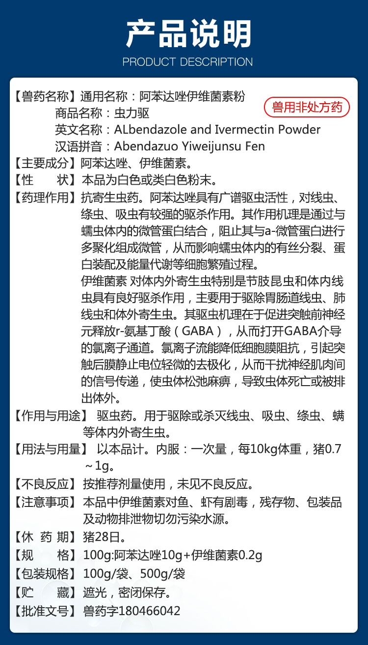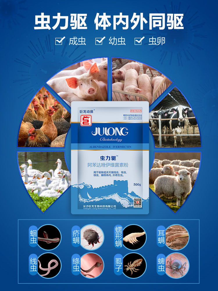 【虫力驱】巨龙动保虫力驱 阿苯达唑伊维菌素驱虫药100g/500g