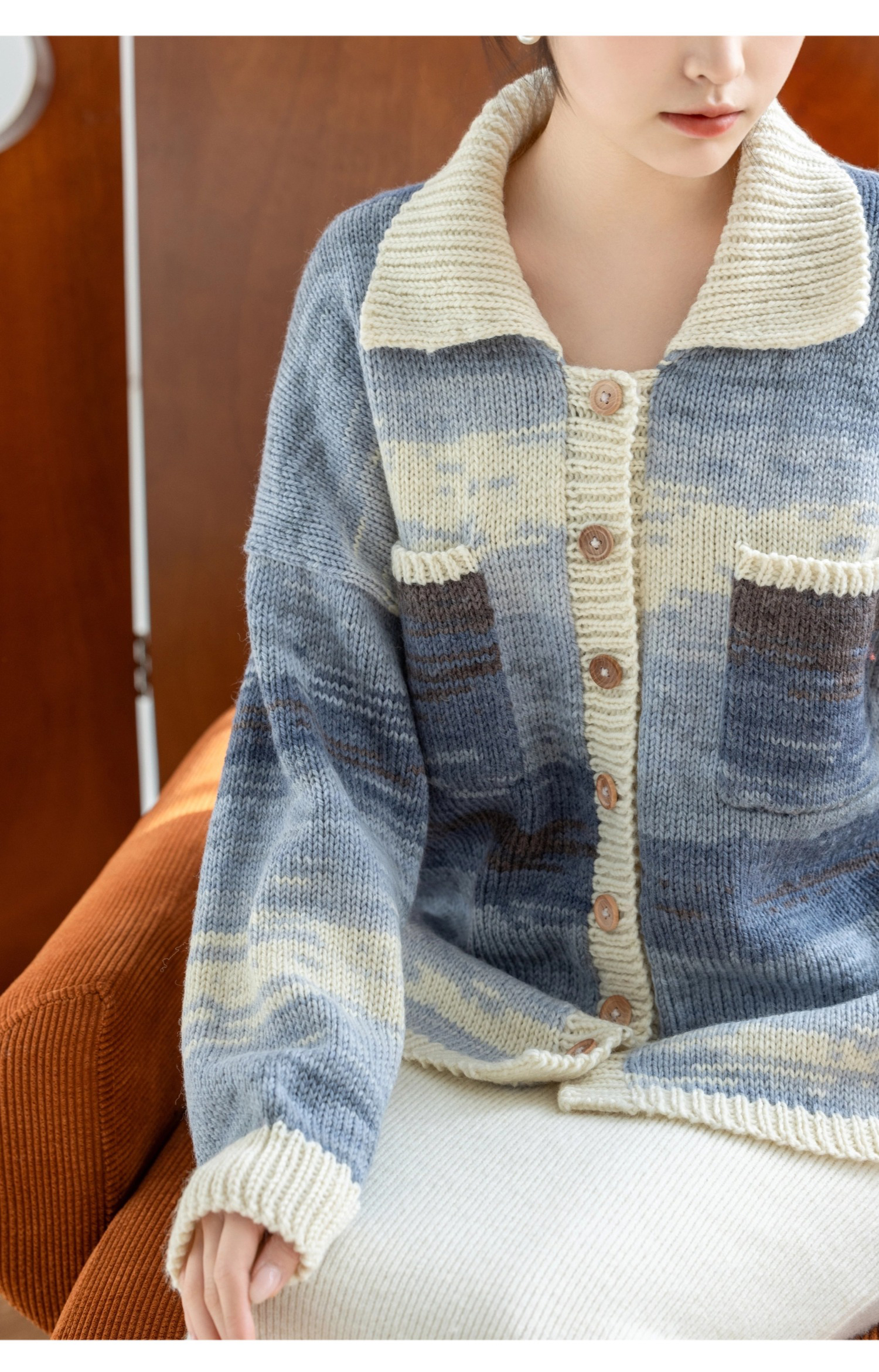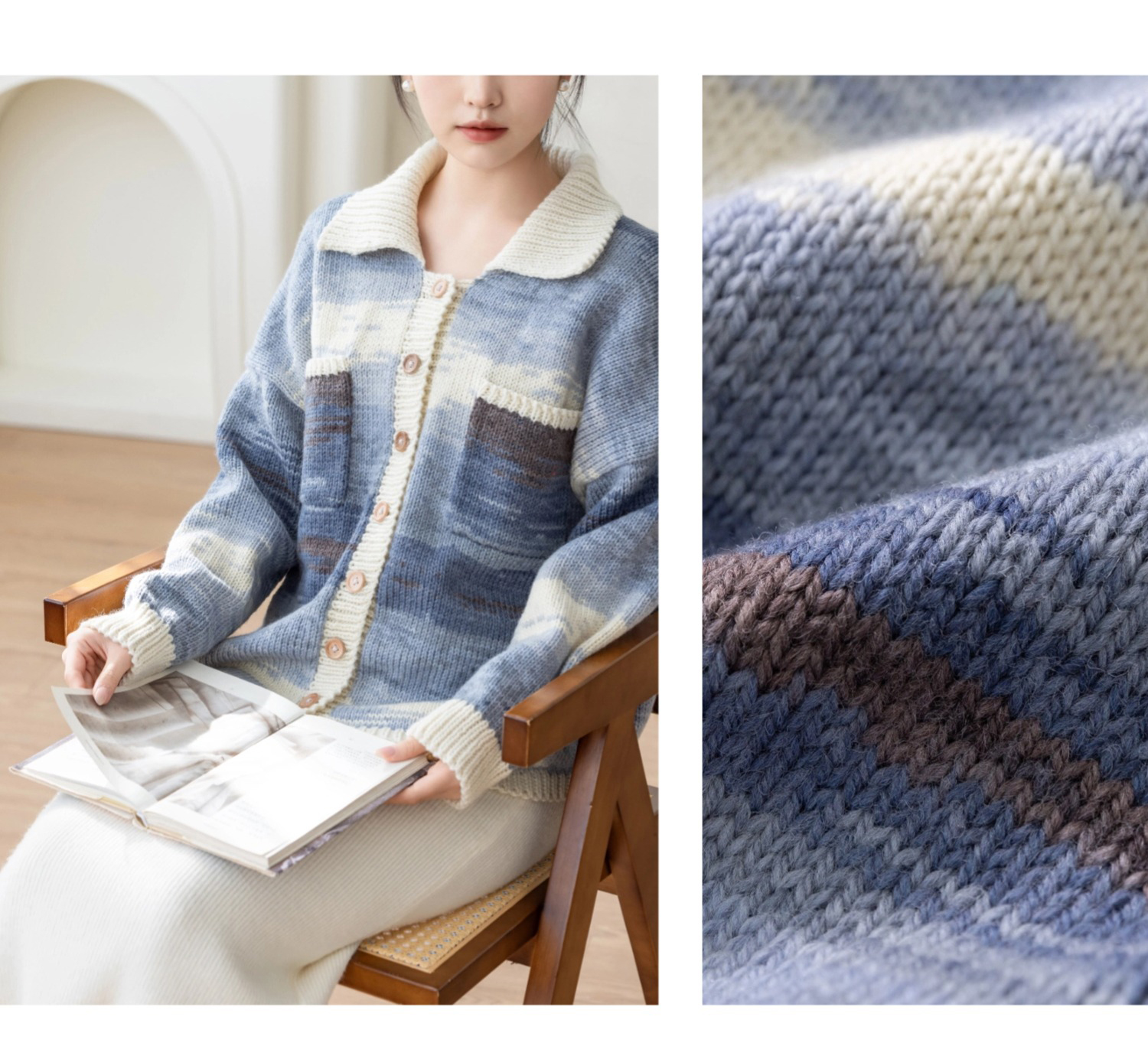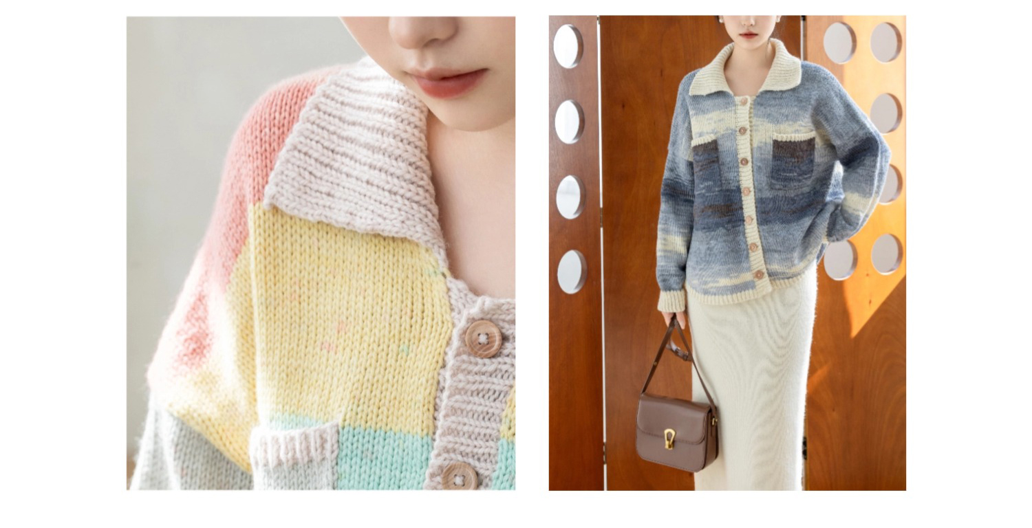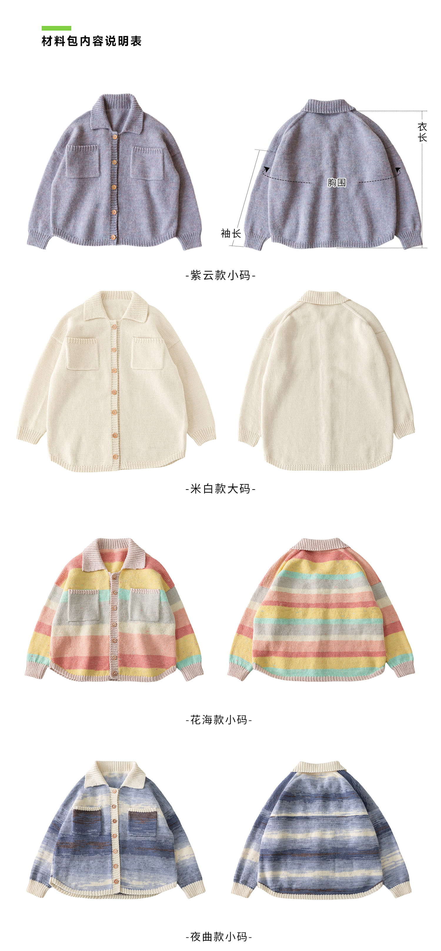 苏苏姐家紫云翻领圆摆开衫手工DIY编织羊毛棒针毛线团衣服材料包