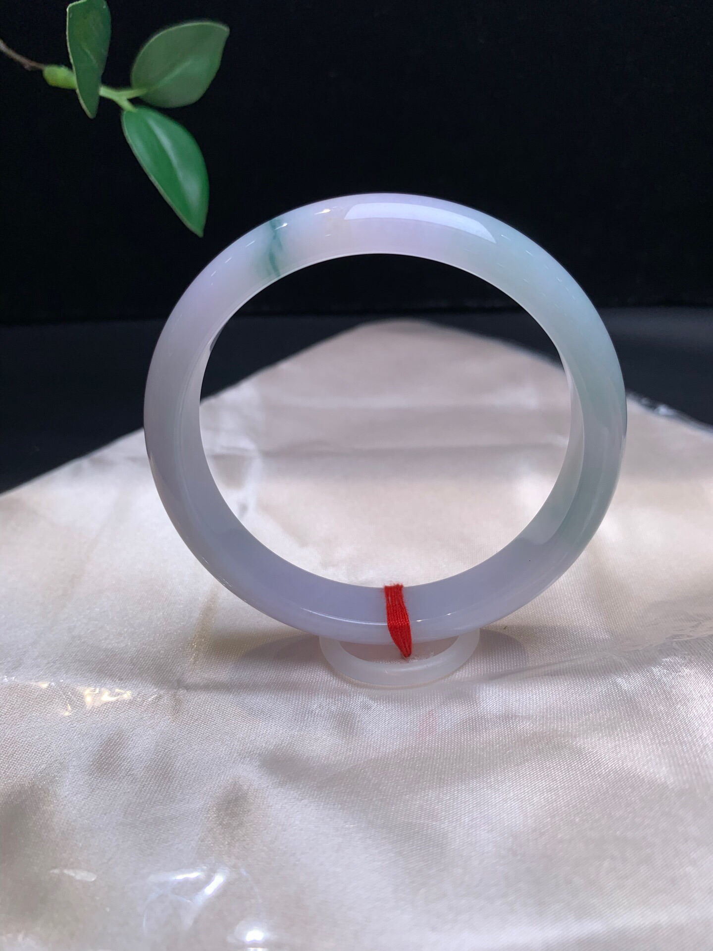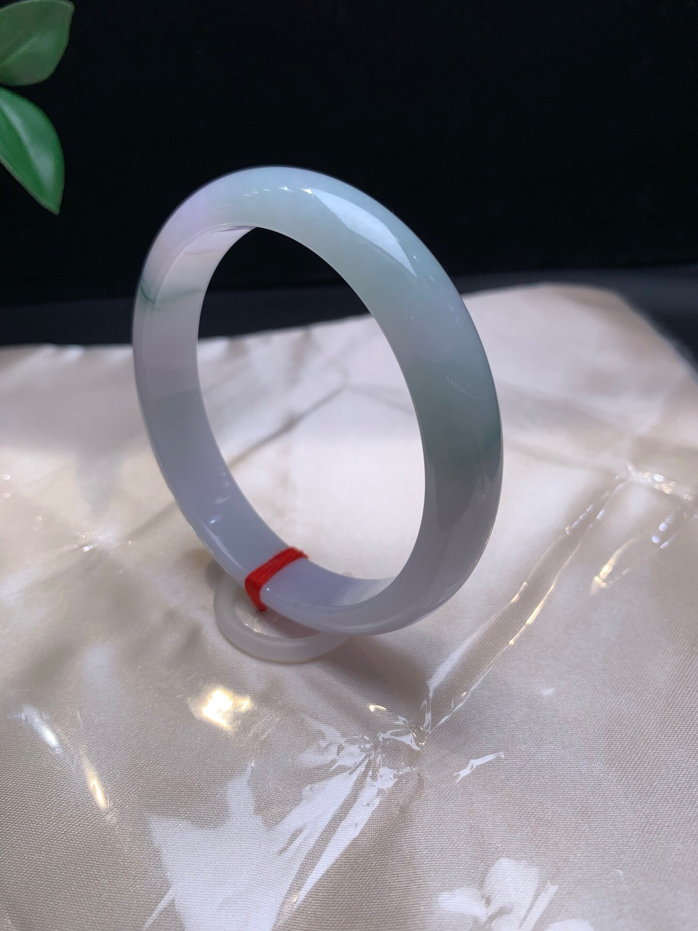 620711,55.3圈口,冰飘花正圈平安镯,老种,冰透起光,白底飘蓝花,条形秀气