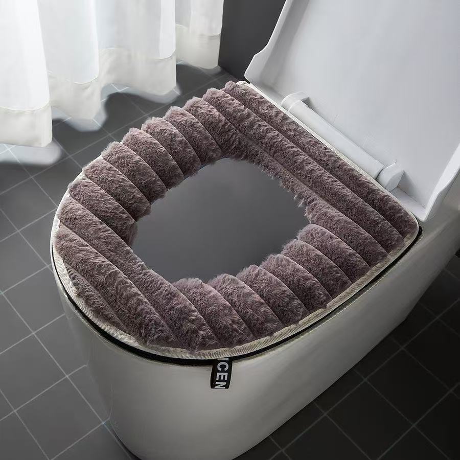 【软 fufu 锁温!一拉即拆 | 暖臀抗冻 | 适配全马桶】新款家用保暖马桶垫毛绒兔绒带拉链秋冬加厚通用马桶圈简约坐便套。hb